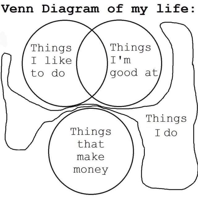 Loved the venn diagram and daily achievement meme – very relatable! When you said the day job was always hard I thought about my new little job and the sensation of paddling like crazy to keep my nose slightly above the waterline and just waiting for a wave to sneak up and submerge me. I know it’ll get easier with time – but man! I’m wondering what I’ve done to myself!