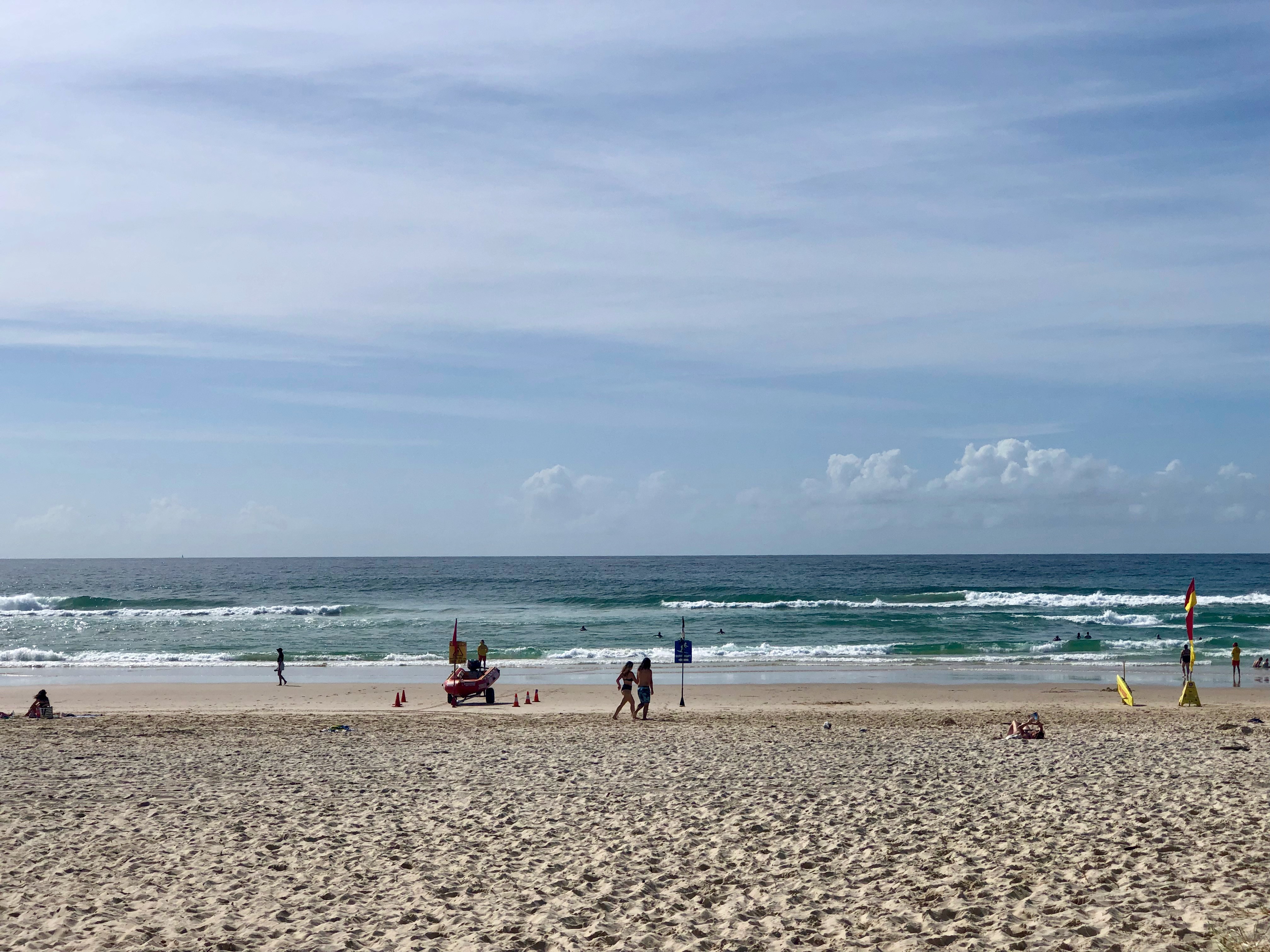 I didn’t even really recognise the beach – although the pines at the southern end near the headland that goes over to Rainbow Bay hadn’t changed. It was a ridiculous sort of comfort to know that something was the same.