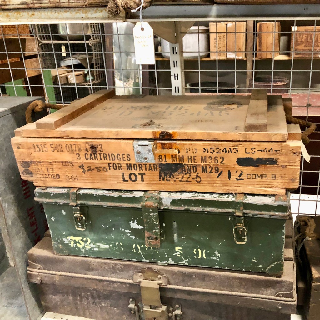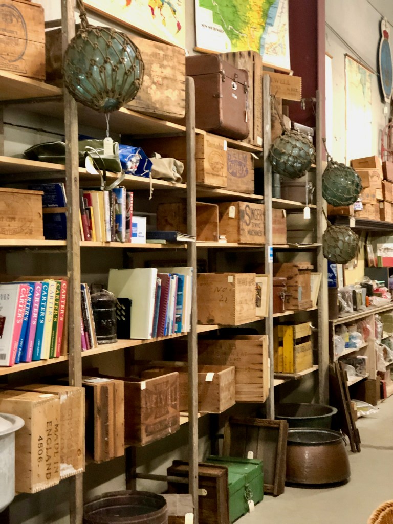 This is an antique (and junk shop) lover’s treasure trove. I loved the packing and old ammunition boxes and this photo (below) taken in Whitby – a town in Yorkshire that features in my new Philly Barker antiques book.