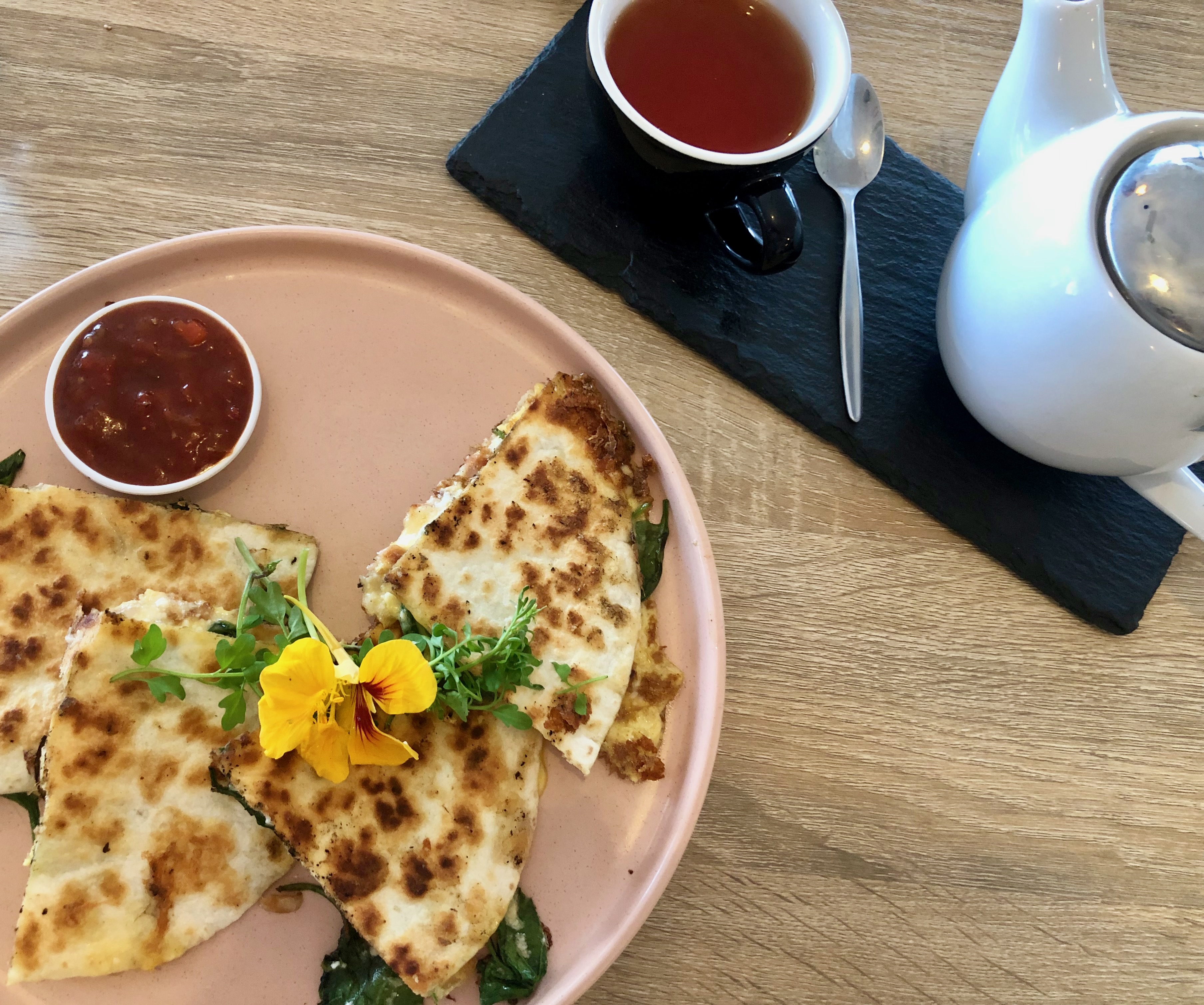 On the first weekend we walked the beach before sunrise and watched a group down there having a silent disco; hit the shops to prepare for the criuise we’re taking together in October; visited Honeysuckle – another of our favourite Sunny Coast restaurants – and took a trip into the Hinterland to Flame Hill Winery.