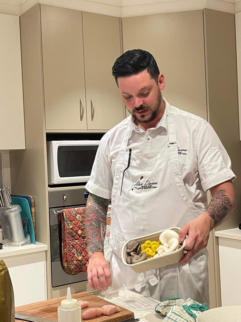 Prior to service, Alan told us a little about himself and how he came to be in the business of private cheffing (spoiler alert – it came about due to Covid’s impact on the hospitality industry). He also explained each course before he served it and even cleaned everything away once we’d finished.