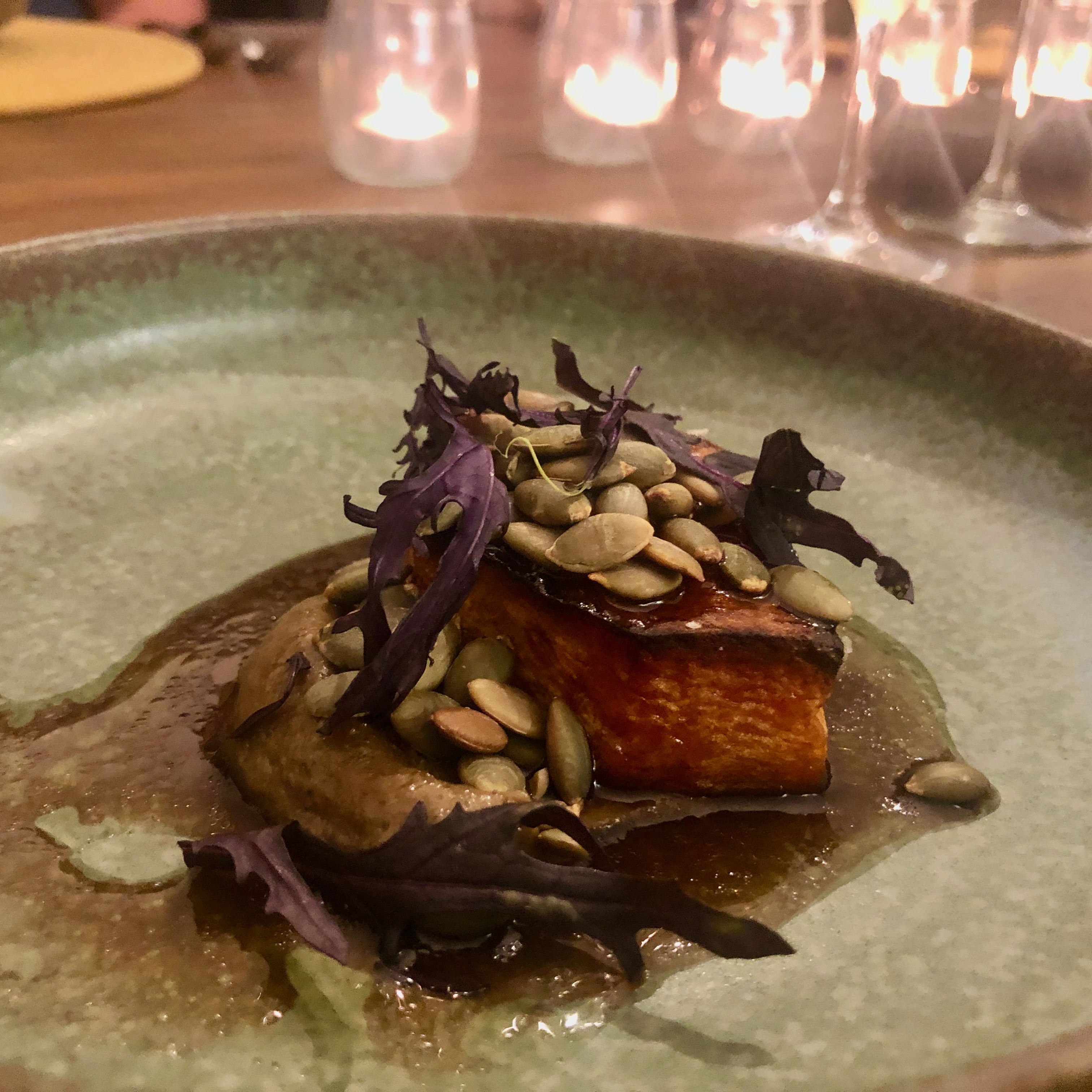 First course: Falls Farm pumpkin, caramel, apple and rosemary
