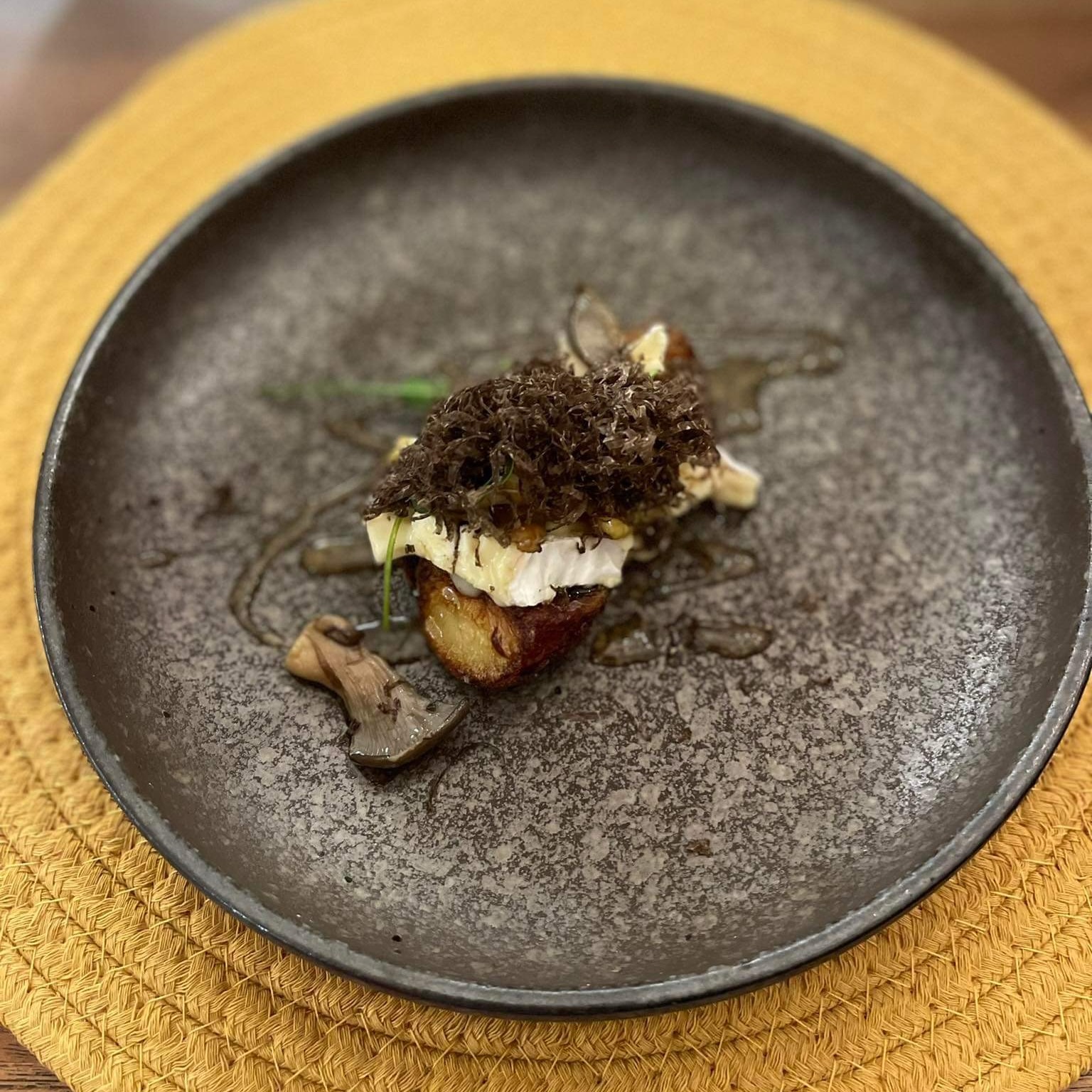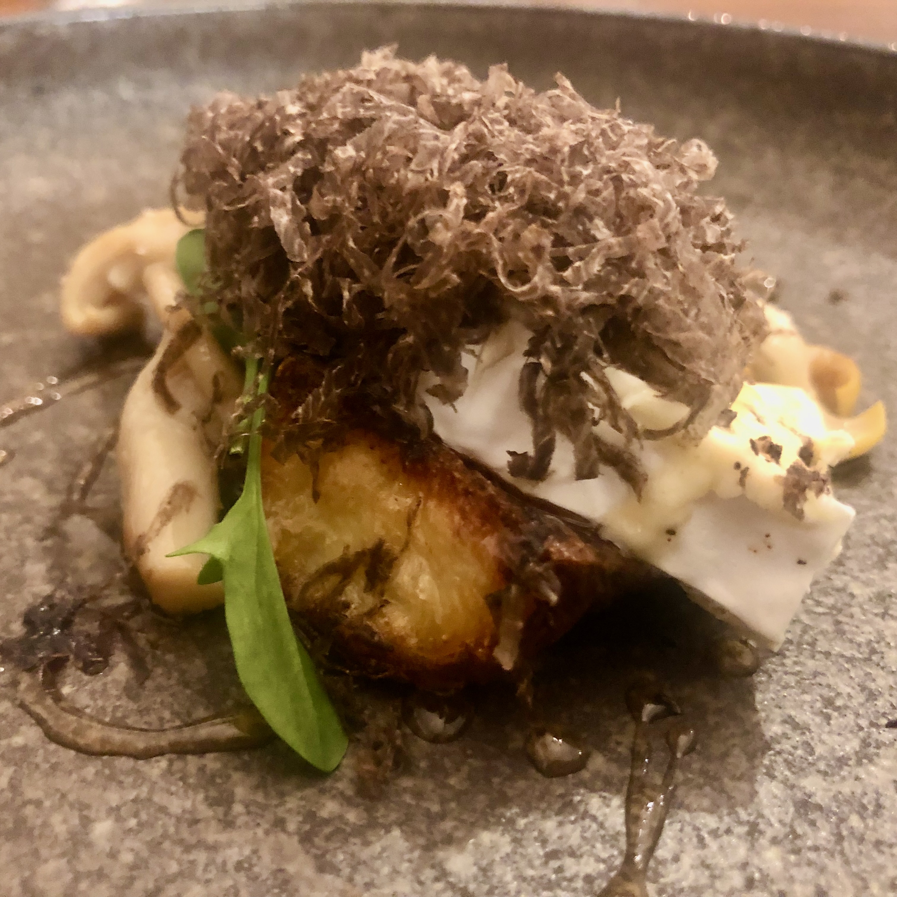Fifth course: Woombye cheese, duck fat potato, mountain top mushrooms, Falls Farm honey, generously (and decadently) topped with black truffle (my dish of the night)