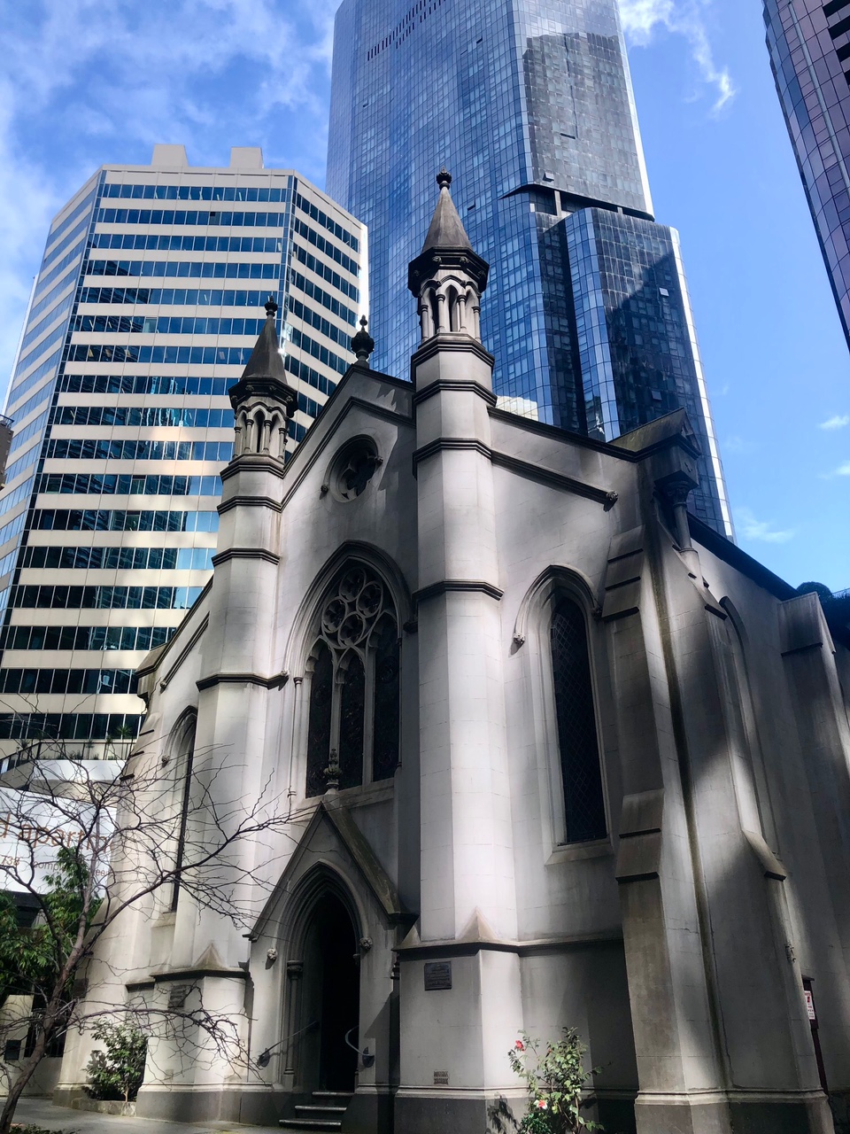 The purpose of my visit had me running around town all Friday, but I still managed to stop to snap this pic of the Welsh church up in La Trobe Street…