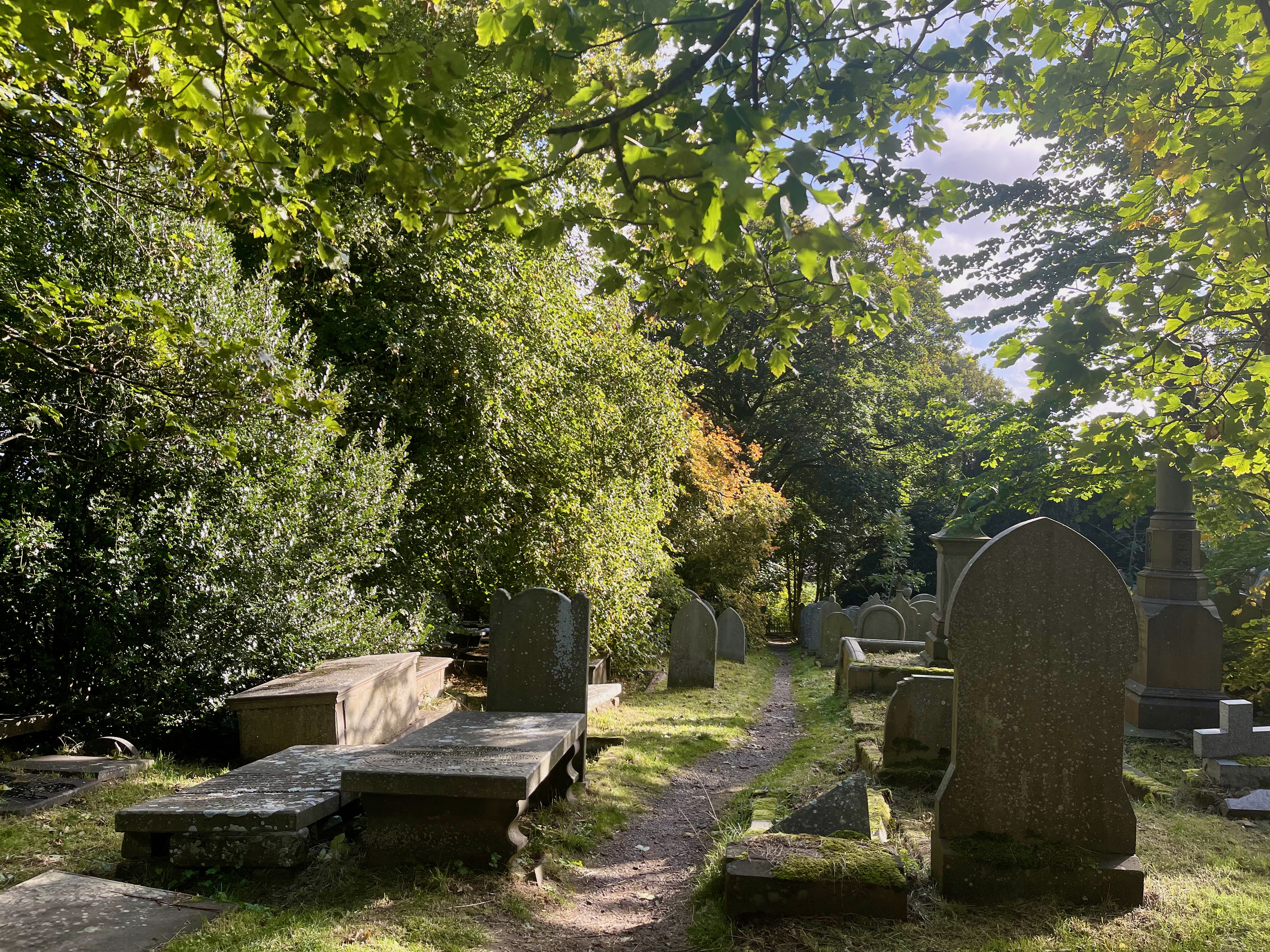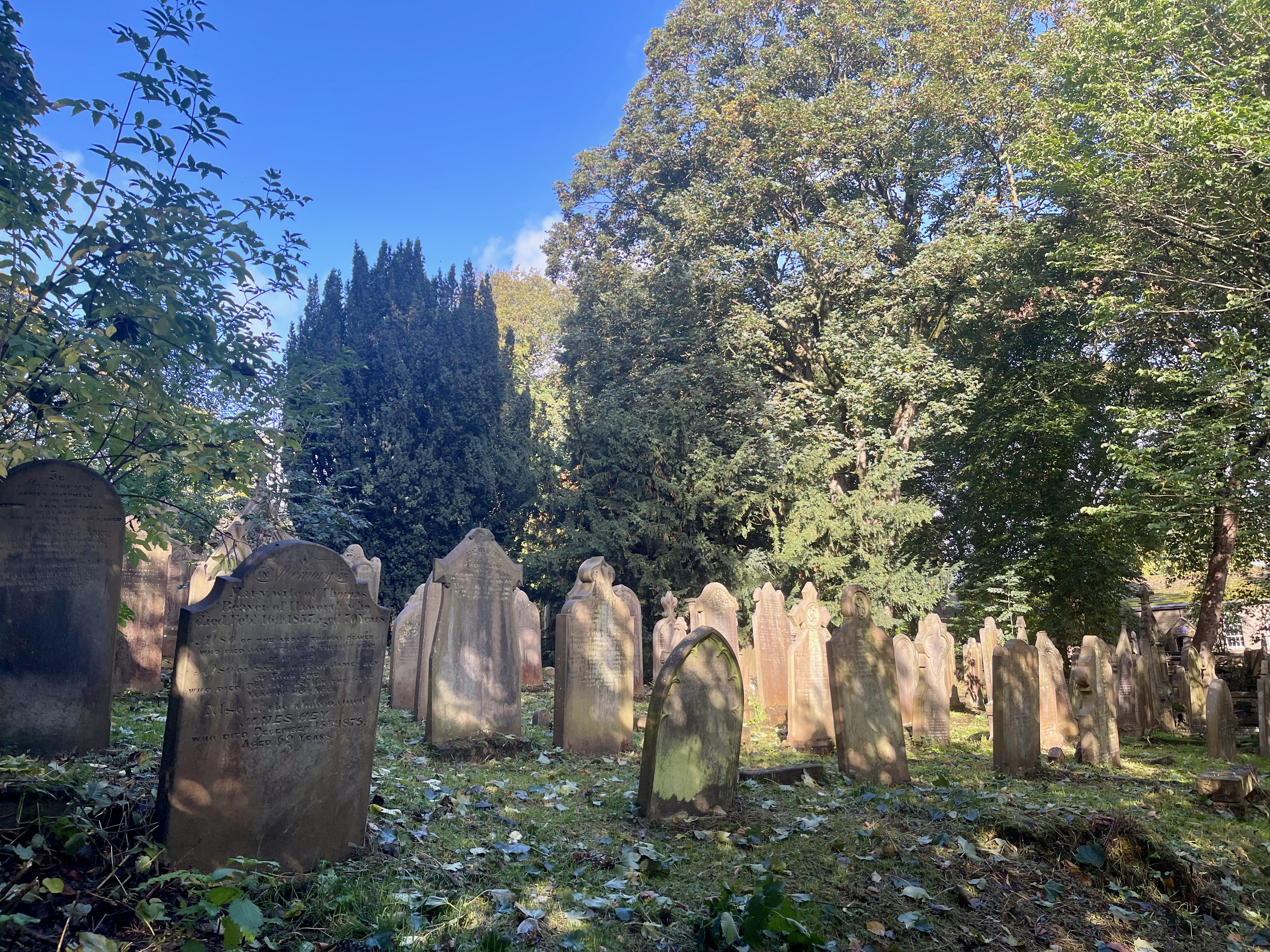We parked just out of town and had a lovely walk along a path that popped us out at the churchyard, with The Parsonage just behind that.