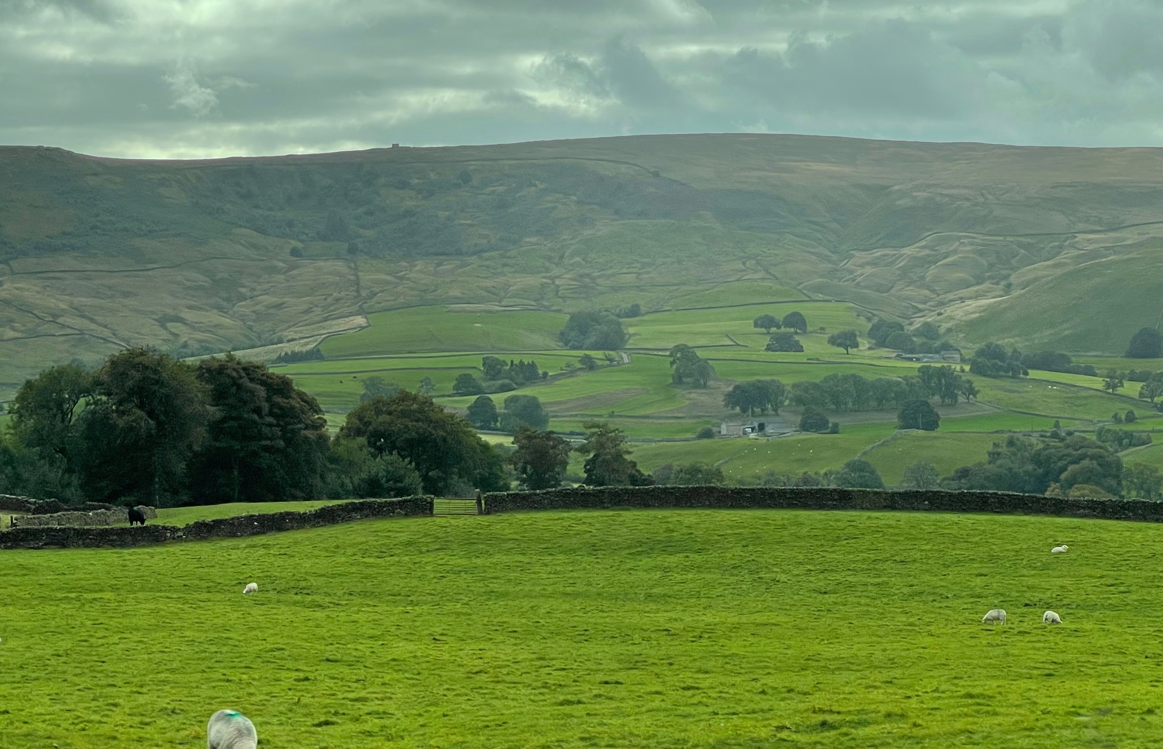 The Dales are all fells (steep barren-sided hills) and valleys. This part of Yorkshire is all up and down. The Cotswolds are flatter, but that’s also along a ridge.