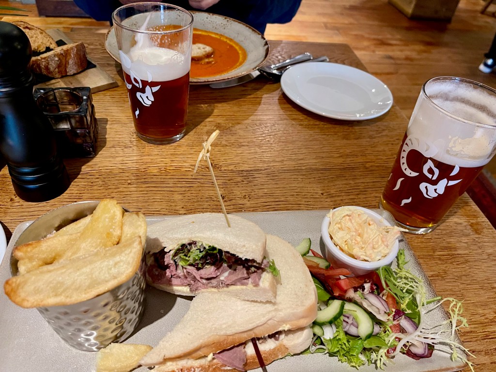 Instead we ended up at The Inn at South Stanley – tomato soup with soda bread for me and a roast beef sandwich for Grant washed down with beer brewed just up the road.