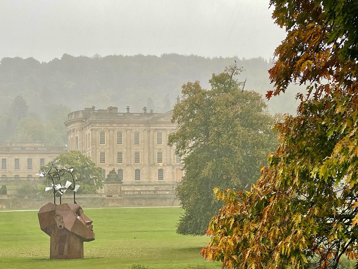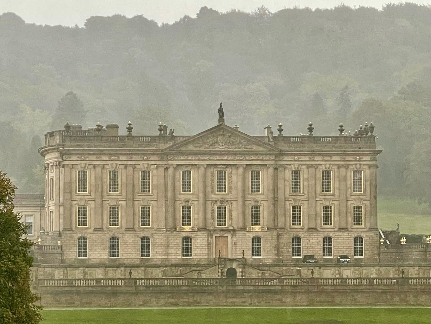 It’s really pelting down this morning so the friend I was supposed to be catching up with was unable to get here. While disappointing it means we can get on the road a little earlier and have time to drive past and photos in the rain of Chatsworth House (aka Pemberley in the BBC adaptation of Jane Austen’s Pride and Prejudice).