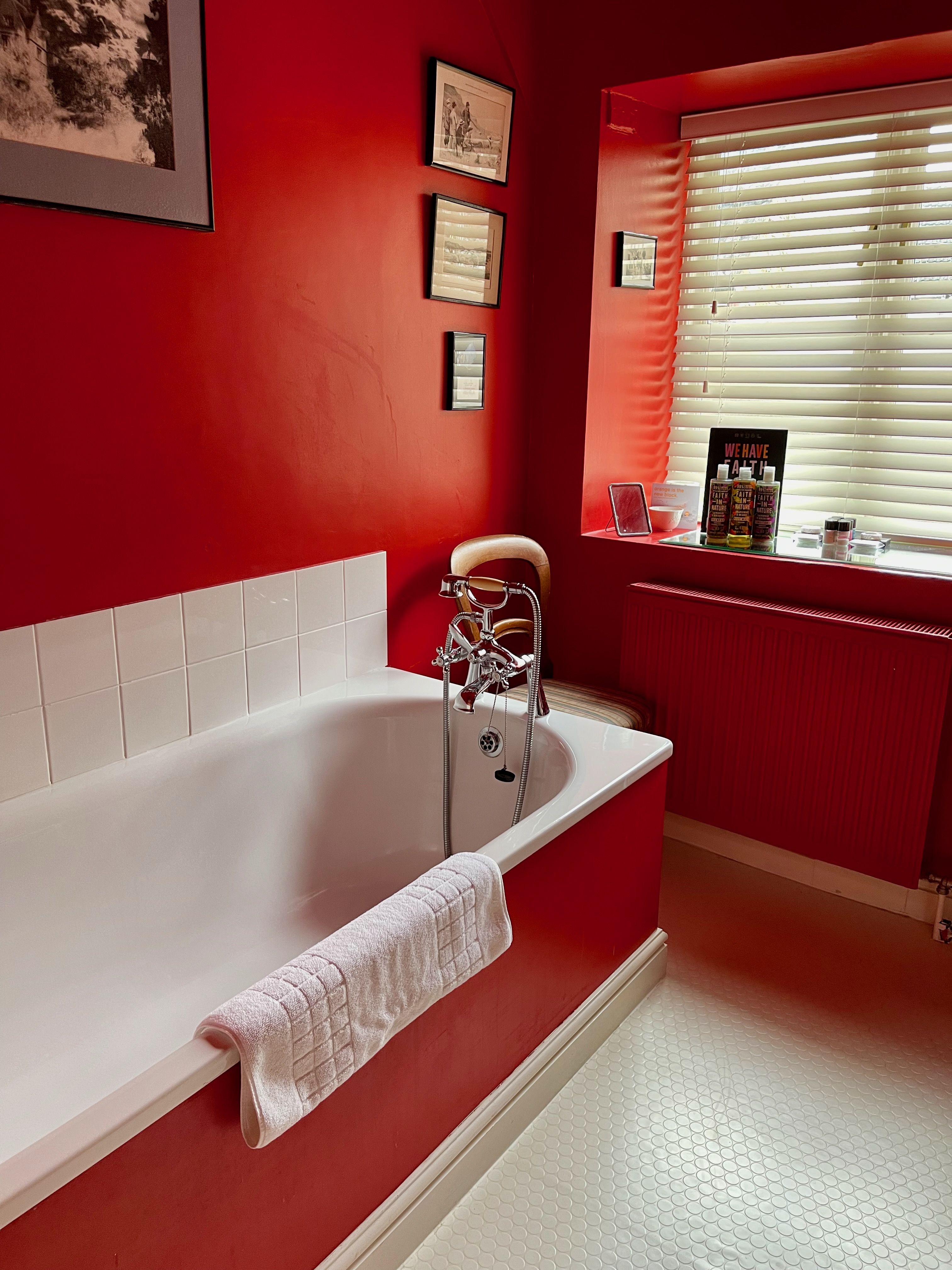 Having said that, it’s quiet, I love its character, and our bed is comfy…but check out the red bathroom!