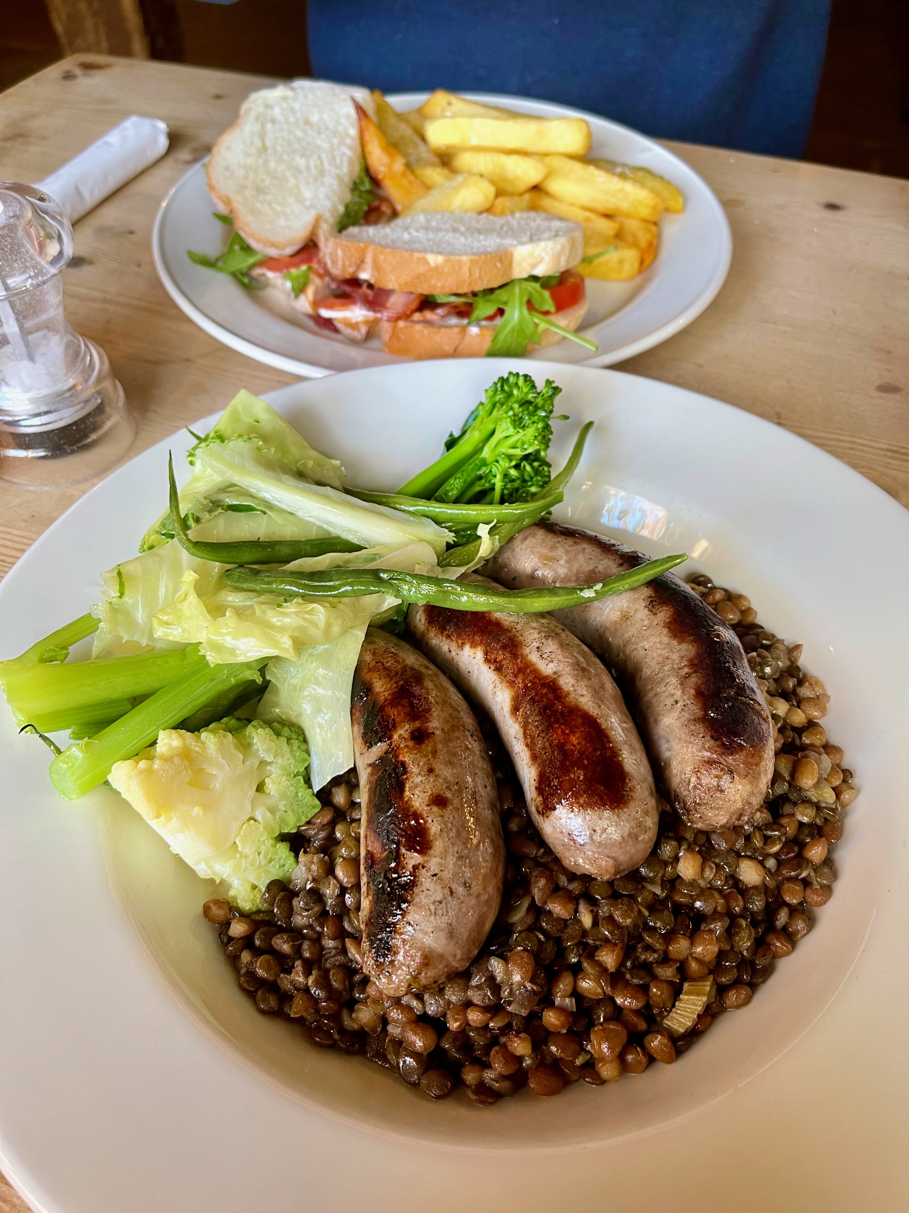 Anyways, not only do they have room for us, but they also have smiles. I choose the venison sausage with lentils (which I manage less than half of) and Grant has a BLT and chips – and some of the remainder of my lunch.