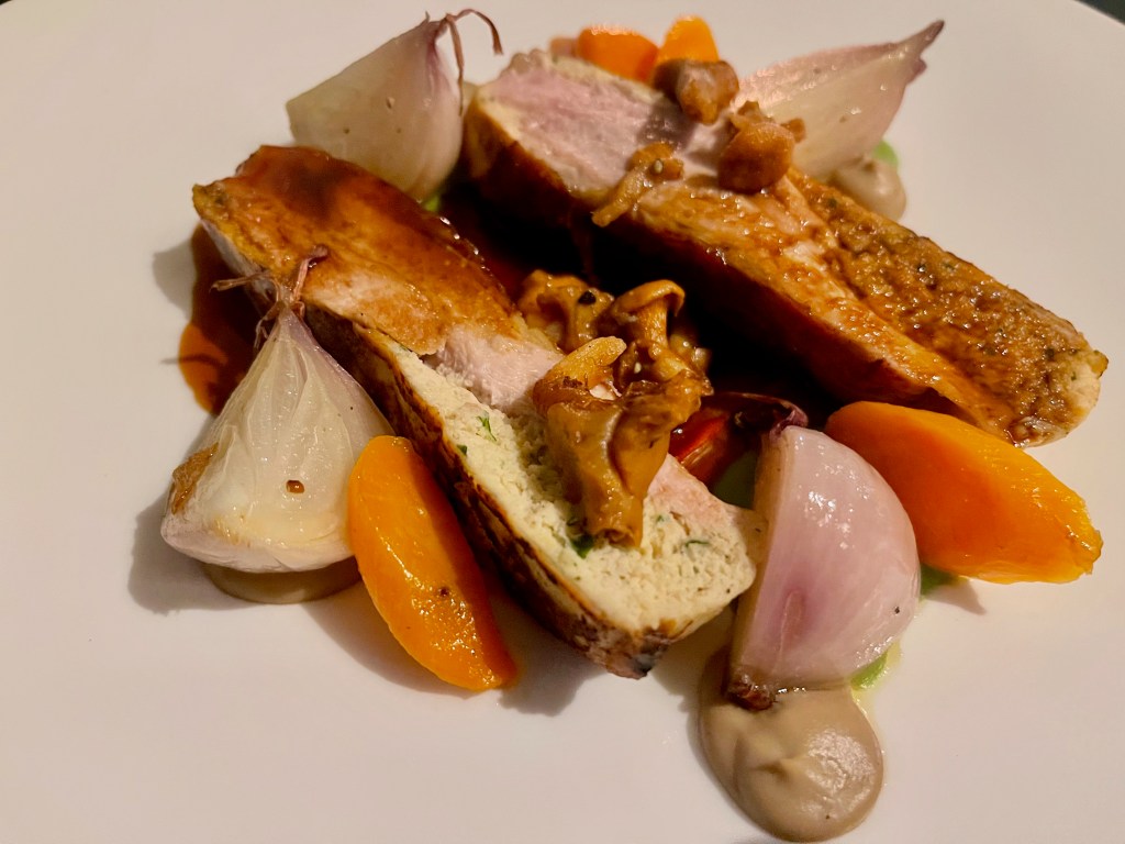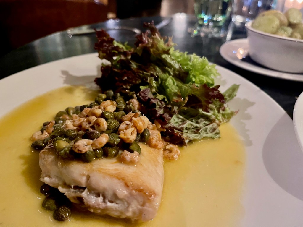 To start Grant had torched Cornish mackerel and I had rabbit and pistachio terrine. For mains, he had roast lemon sole with brown shrimp butter sauce and I had guinea fowl.