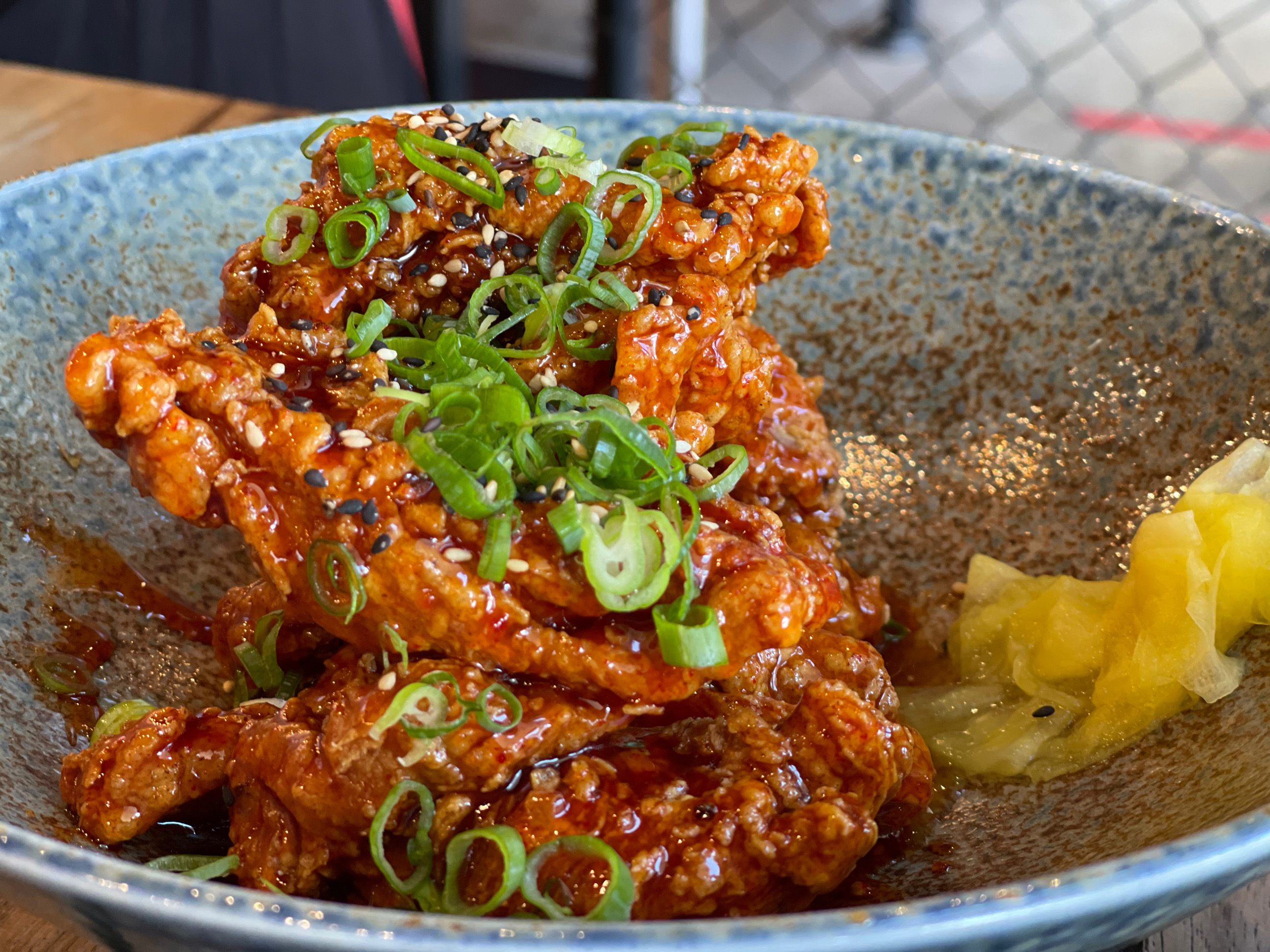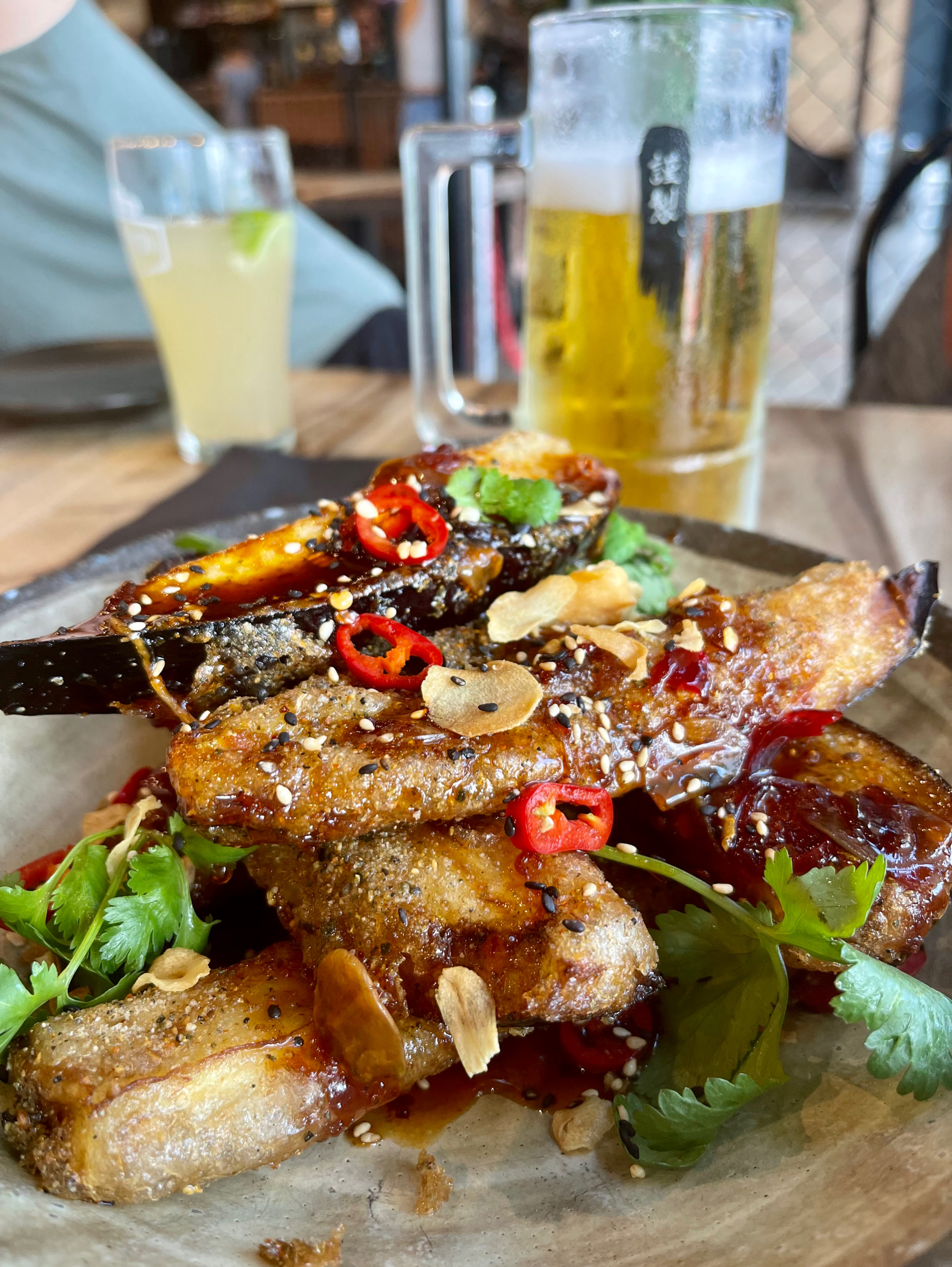 …and lunch out with Sarah and a couple of her colleagues at Giddy Geisha in Maroochydore. Grant, Sarah and I shared eggplant chips, butter chicken and Korean chicken ribs.