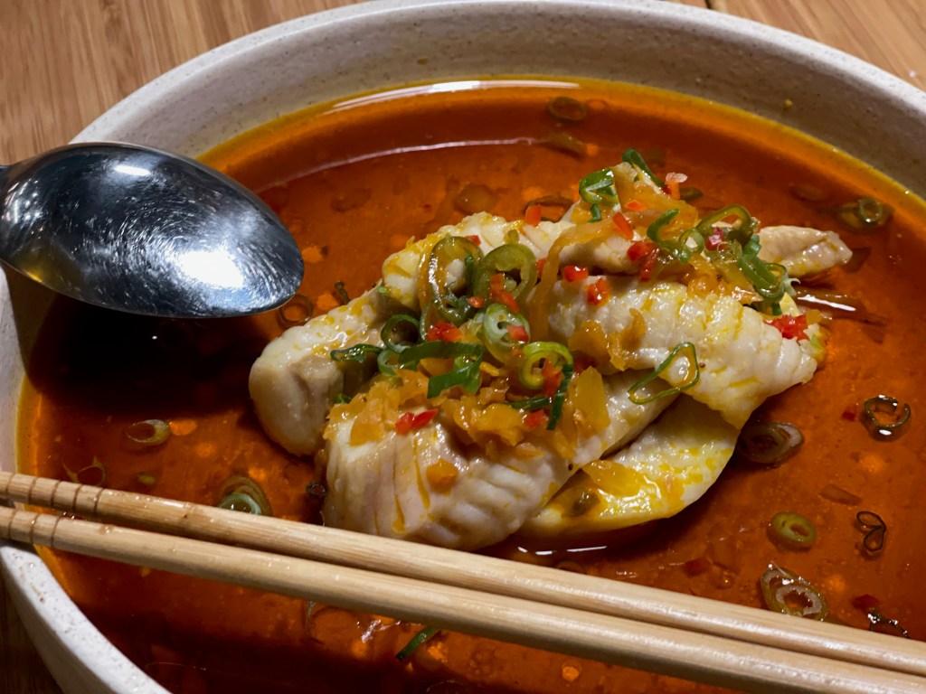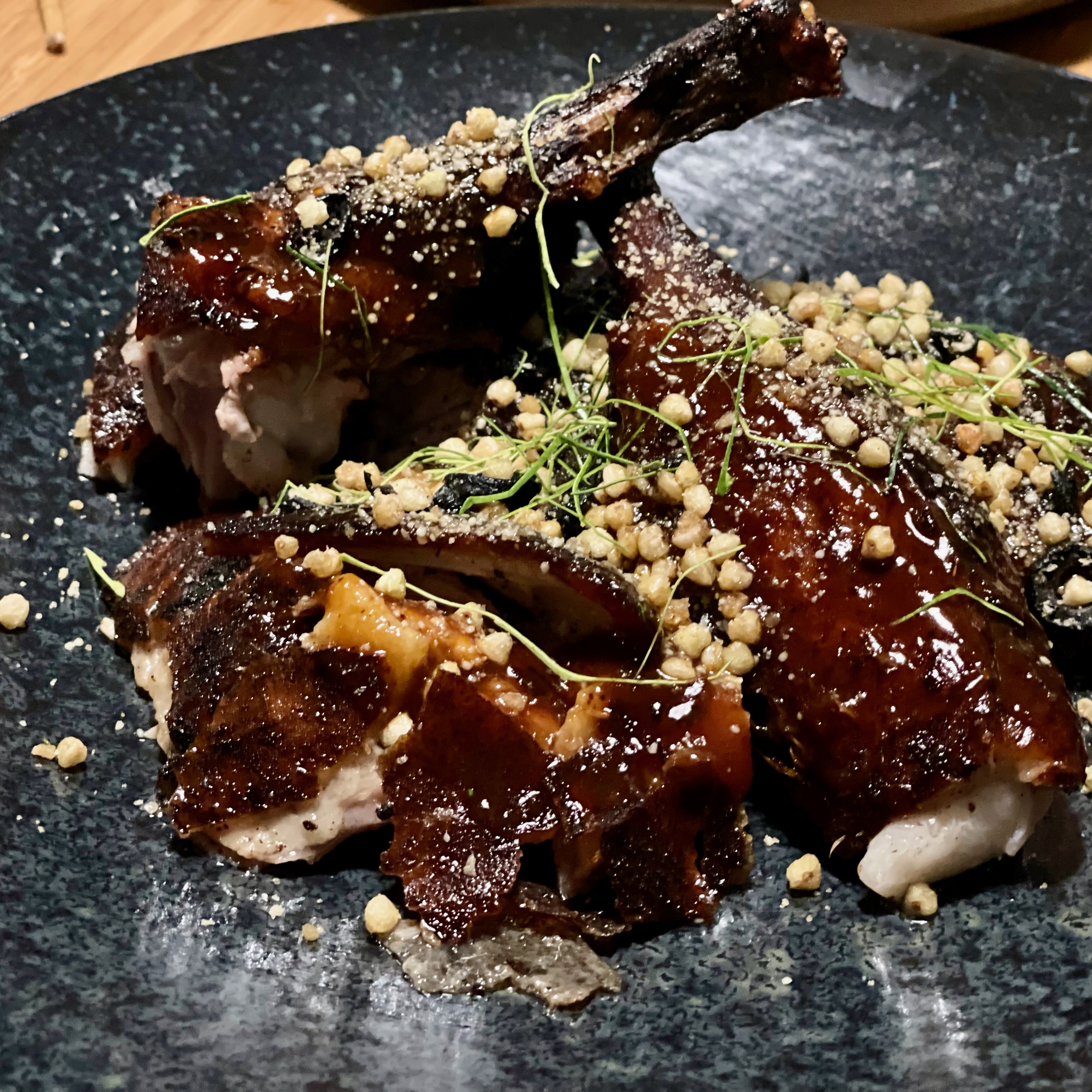 Finally we shared Jiangxi butterfish, with pickled mustard greens and Szechuan oil; and tea-smoked duck with sweet & sour hoisin and black olive kombu.
