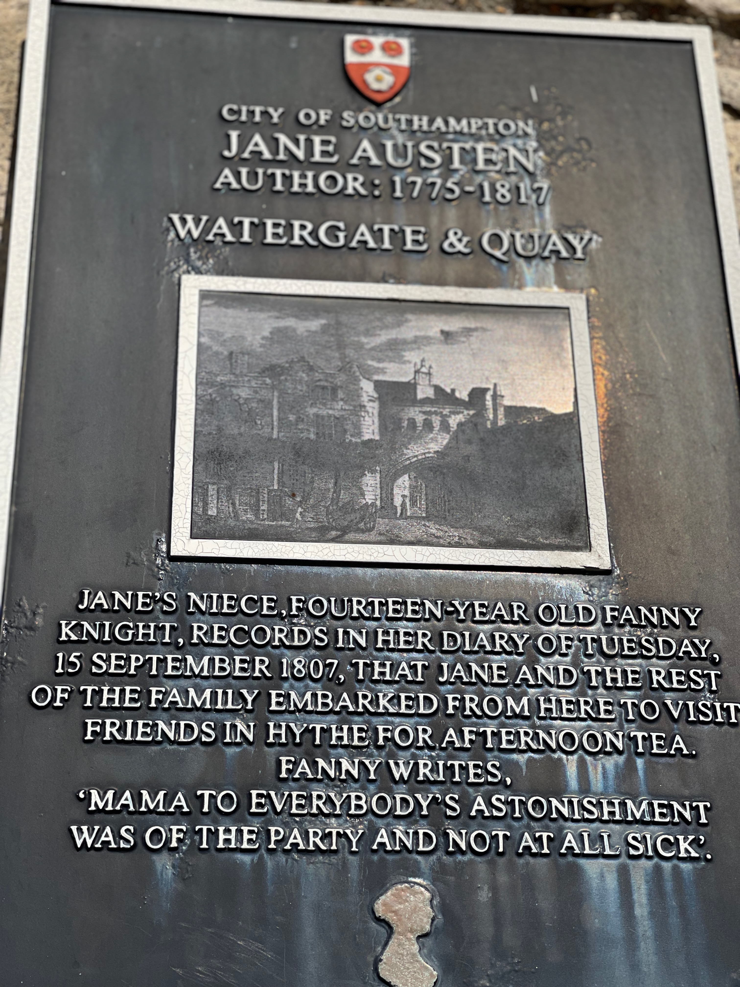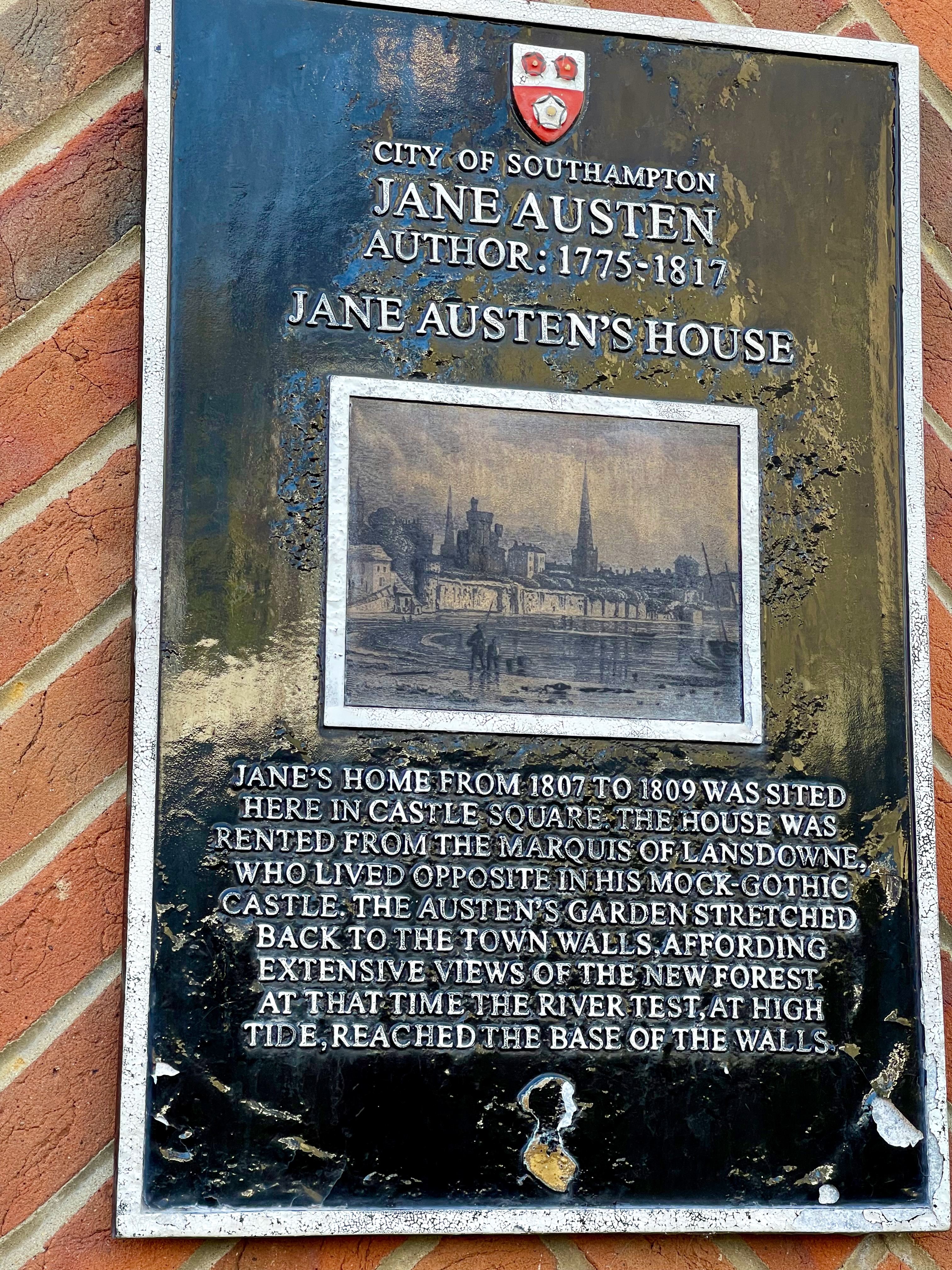 While Jane didn’t spend long in Southampton, the plaques scattered around town tell us all about it. The house she lived in at 2 Castle Square, backing onto the town walls, is now a pub, The Juniper Berry.