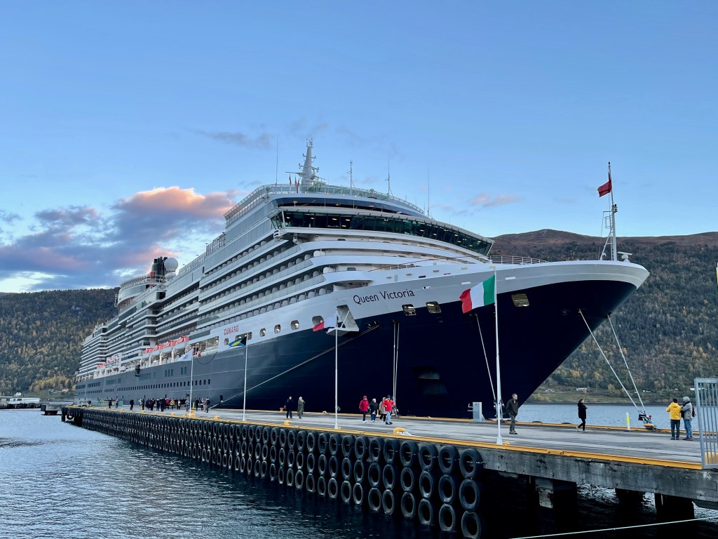 We’re off – on a 12-night voyage on Cunard’s Queen Victoria. We’ll be stopping at 4 Norwegian ports: Andalsnes, Tromso, Narvik, and Stavanger, and, fingers crossed, get to see the northern lights.