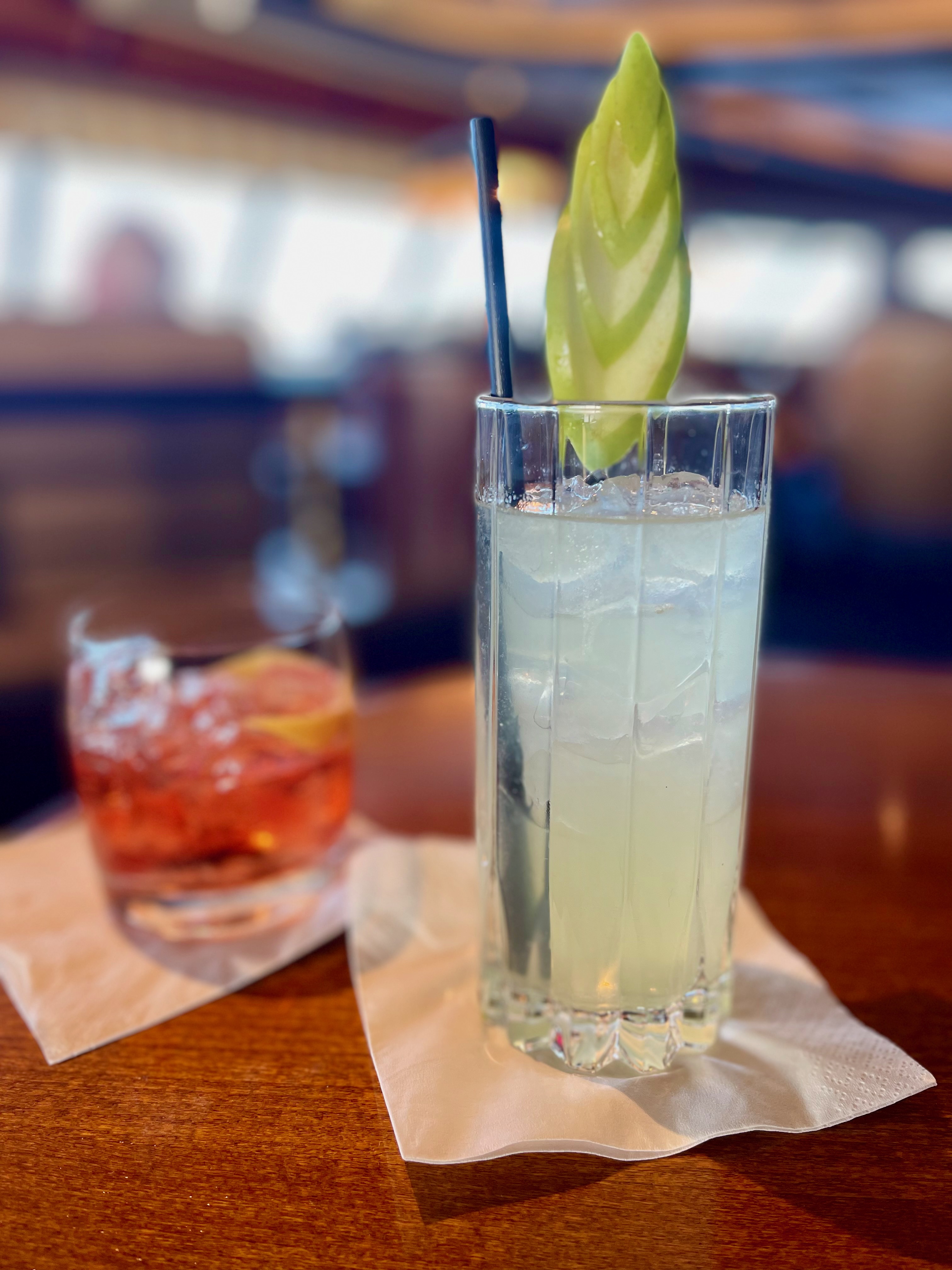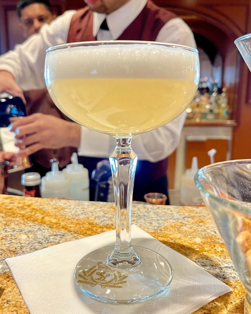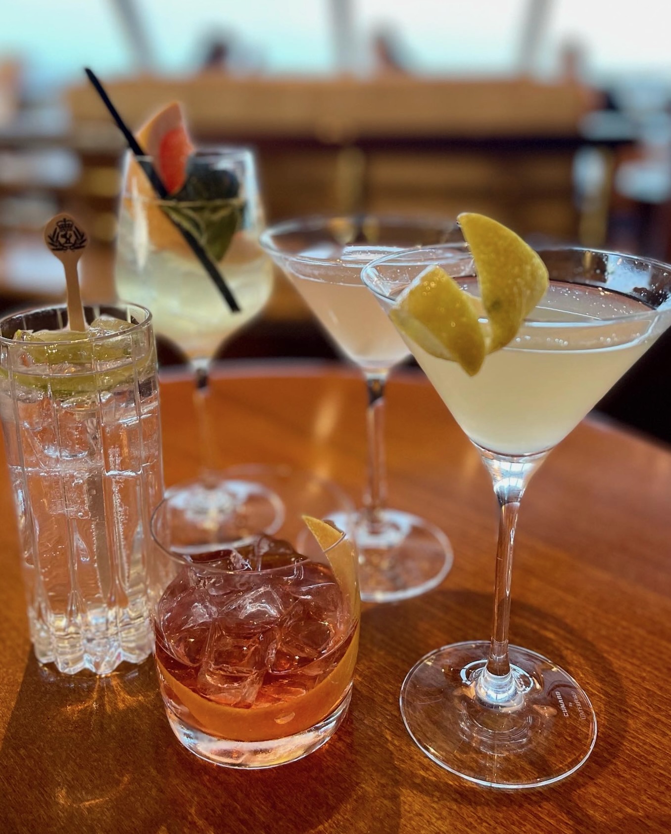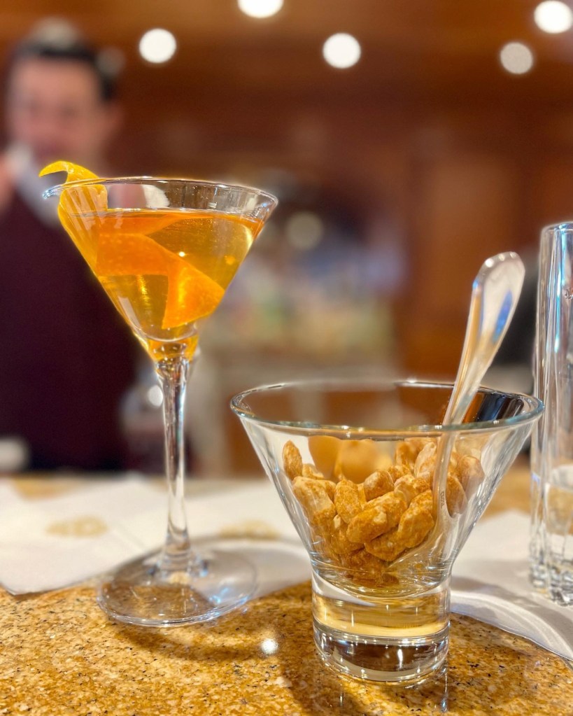 While Grant would have a beer while playing bingo, most days we tried not to drink alcohol until late in the afternoon. Then we’d have sundowners in The Chart Room or The Commodore Club (above) and finish up most nights at the gin bar (below).