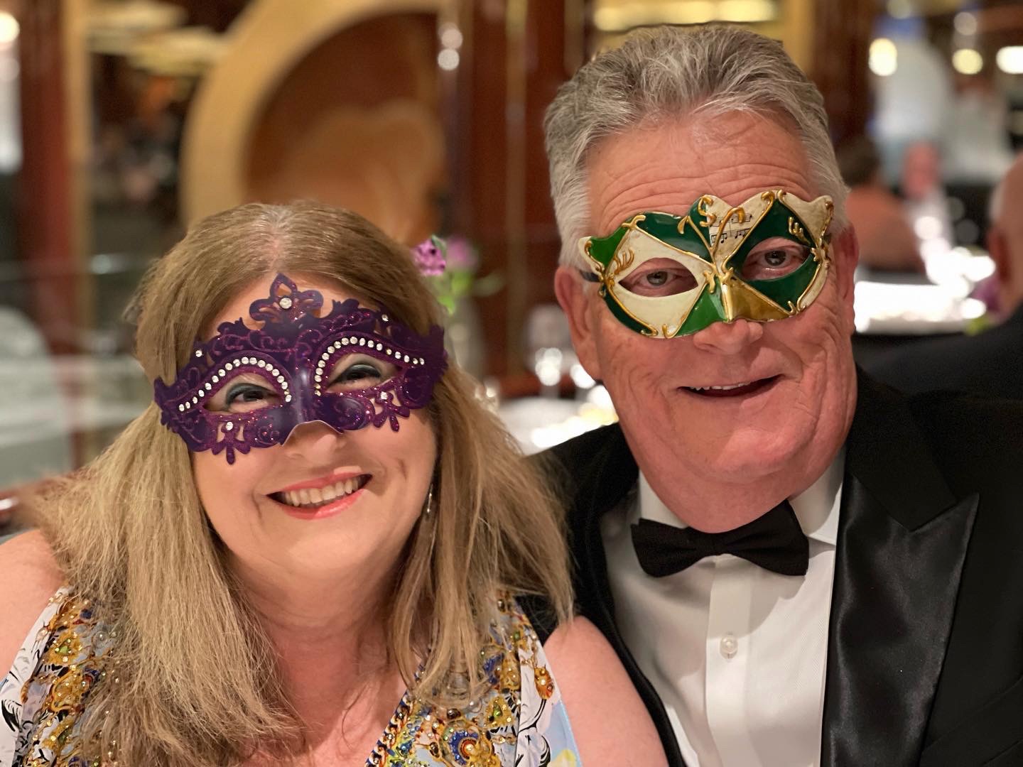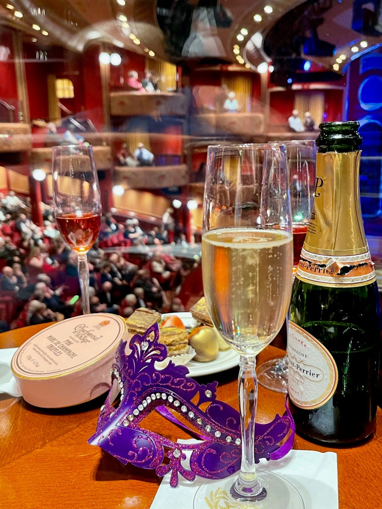 The gala nights are themed and on our cruise, we had a black and white night, a masquerade night, and a roaring twenties night. While you can go all out – and some people did – most people had at least a nod to the themes.