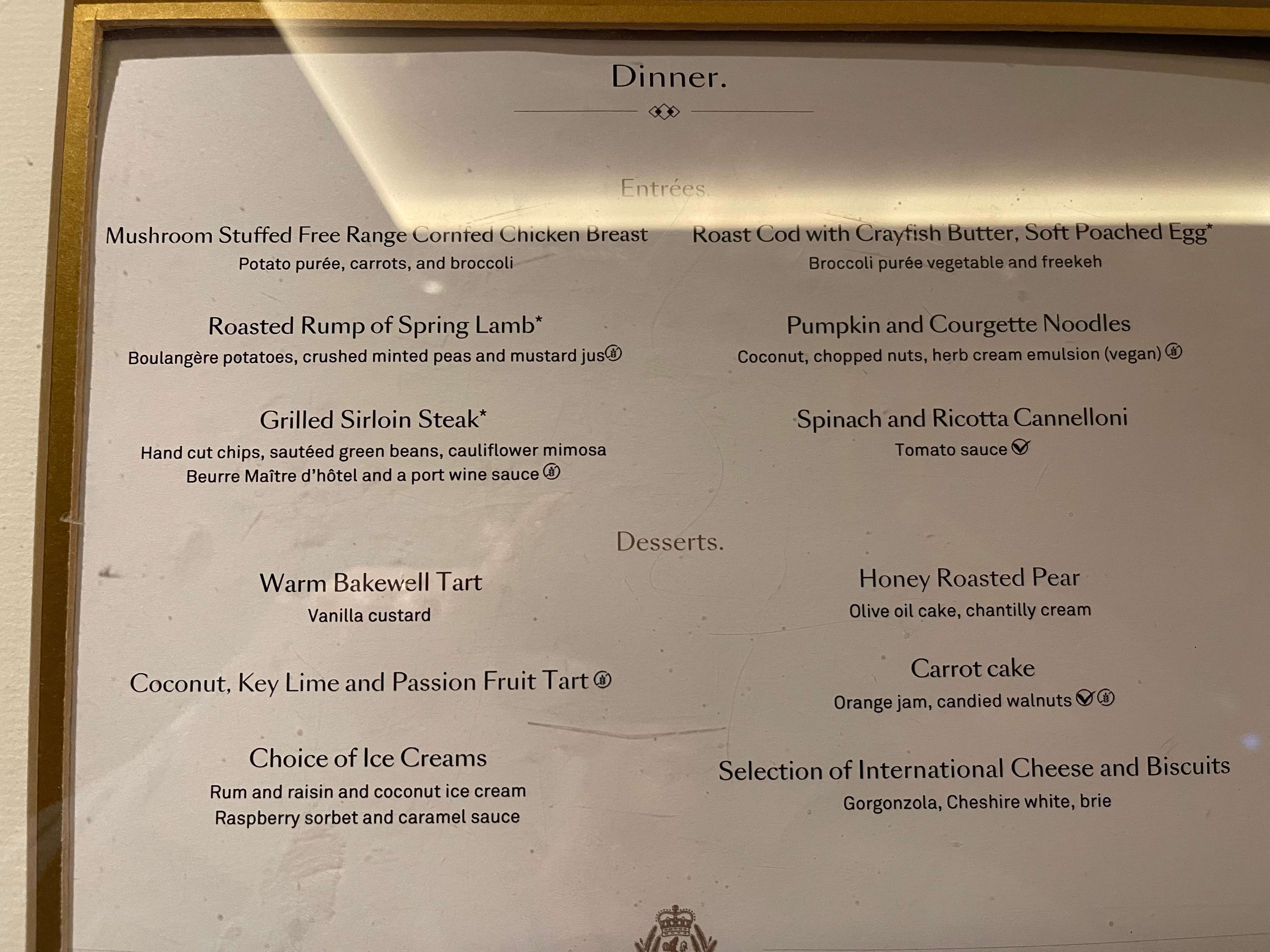 For the main restaurant, the evening dress code for men specifies a dress shirt and trousers – jackets and ties are optional. Gala nights require a formal suit – which means a jacket and a tie. (At the time of our cruise, dinner suits were specified although this has now been relaxed to a formal suit.)