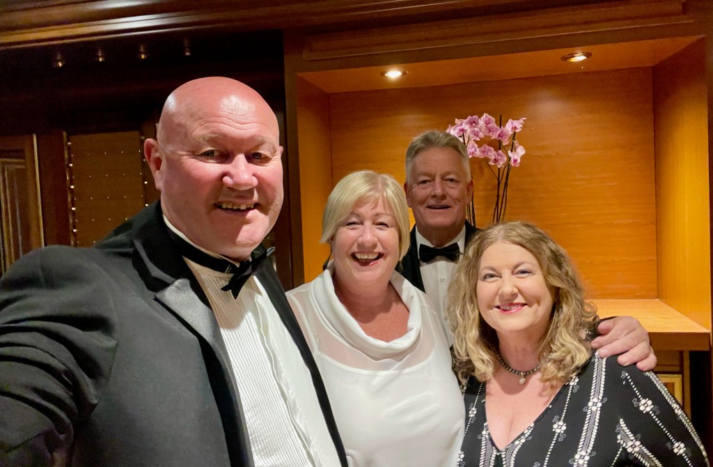 Plenty of men on our cruise did the dinner suit thing – and you can hire them on board at a cost, but we found it more economical to buy him a dinner suit off the peg at Marks & Spencer. Fully outfitted for gala nights for £130. It was the first time since we got married that he’d been properly suited and booted.