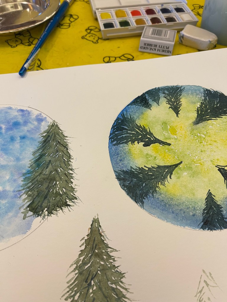 After lunch Heather and I would do watercolour painting classes while our husbands either read, played board or card games, or got the washing done. (Heather and I were way too busy for that…)