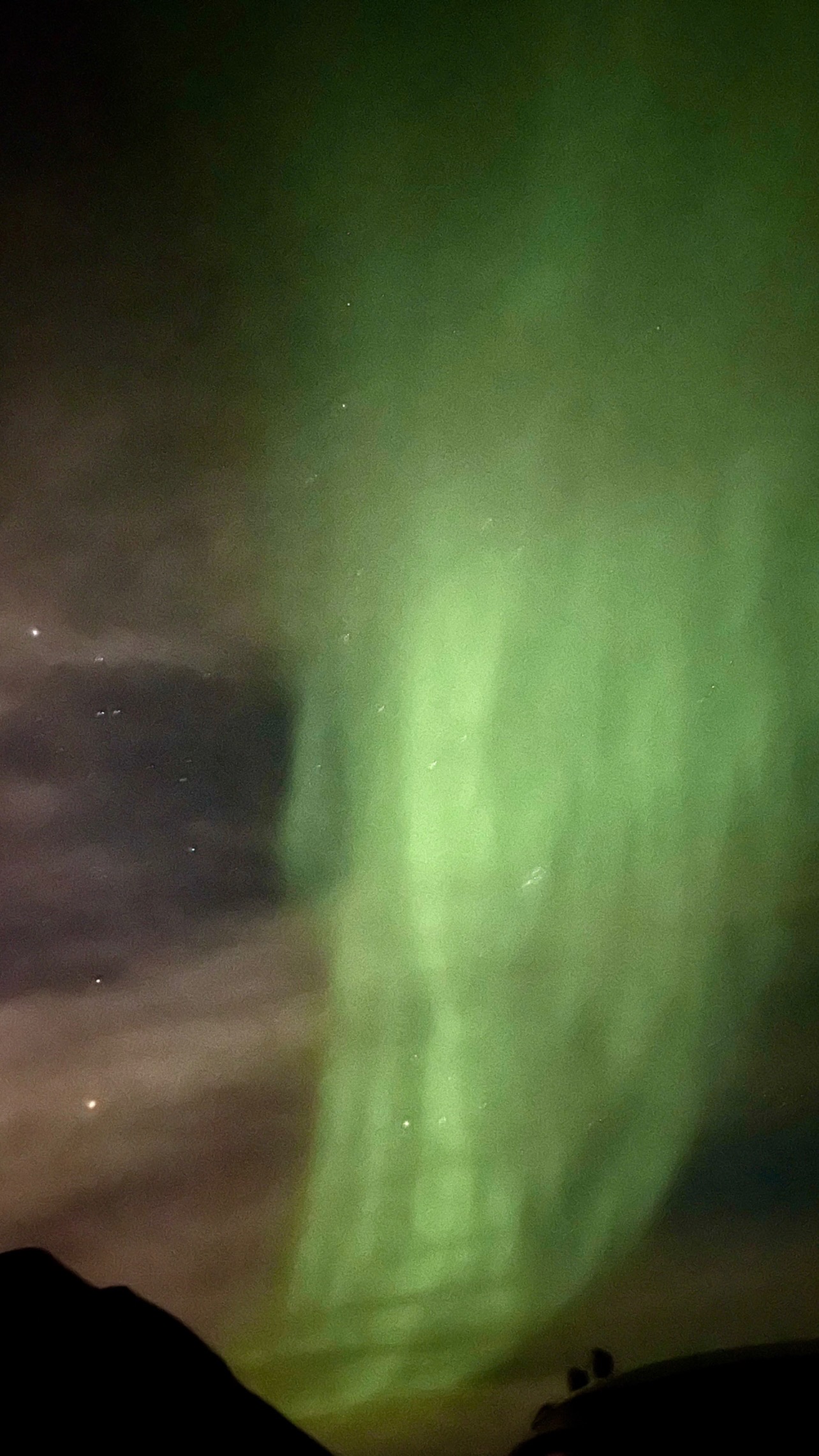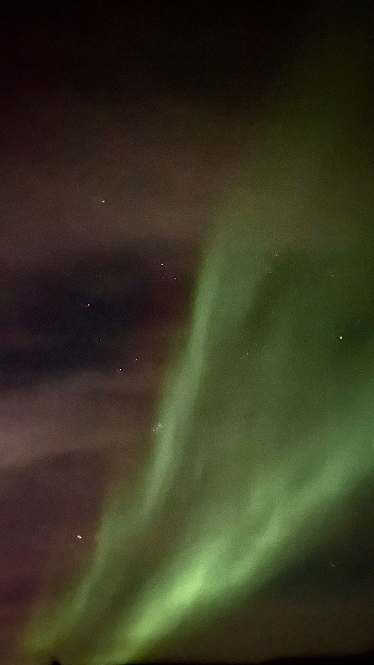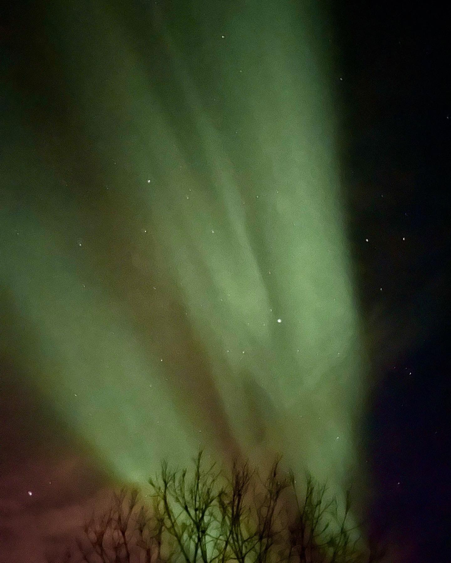 When the message came through from John at about 10pm that it had started, it just looked to the naked eye as though there were milky, starry streaks through the sky but when I pointed my camera at them it became magical and soon we were able to see the colour and the movement without relying on the camera.
