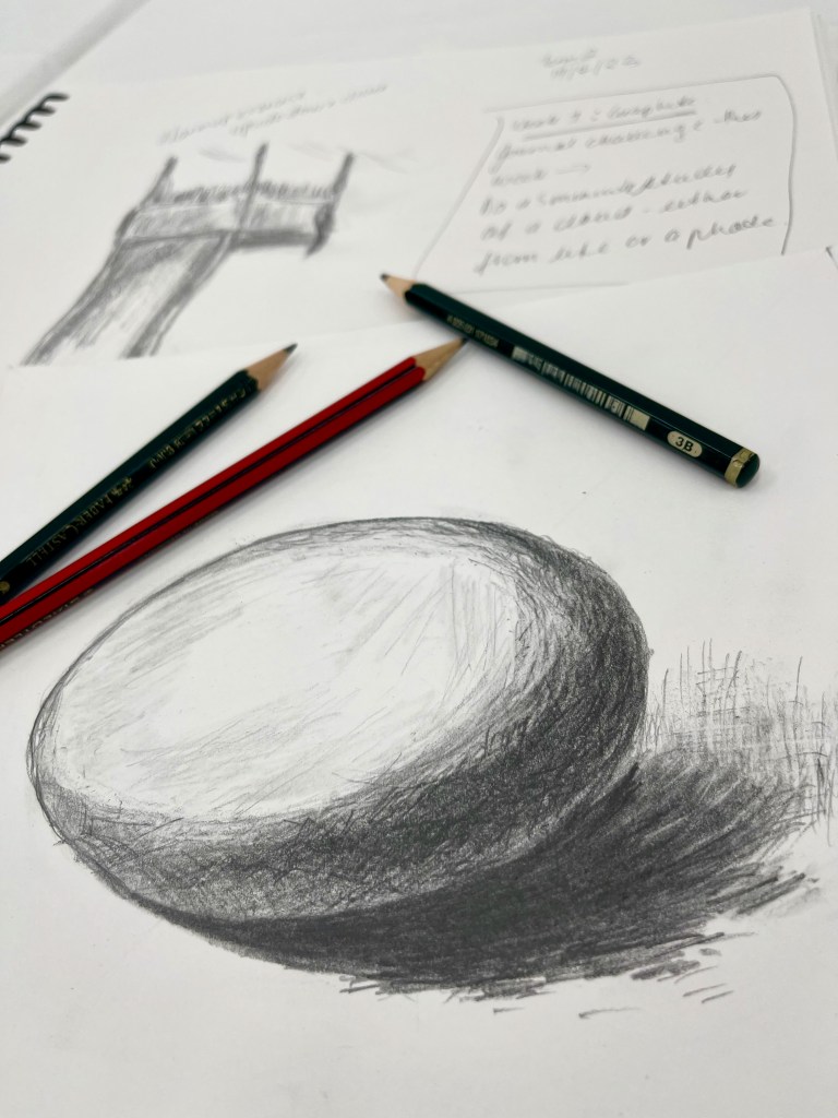 Art classes are now back after the Easter break and I’ve actually made it there. We’ve been practicing perspective drawing with graphite pencils.