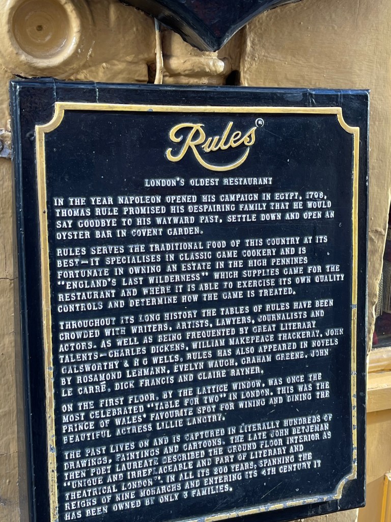 We walk past Rules – supposedly the oldest restaurant in London and one I wanted to make a booking in except that it’s not open on Mondays – and Mr Fogg’s which is one of the most Instagrammed pubs in London. If ever we do an Instagrammable pub crawl, that will be on it.