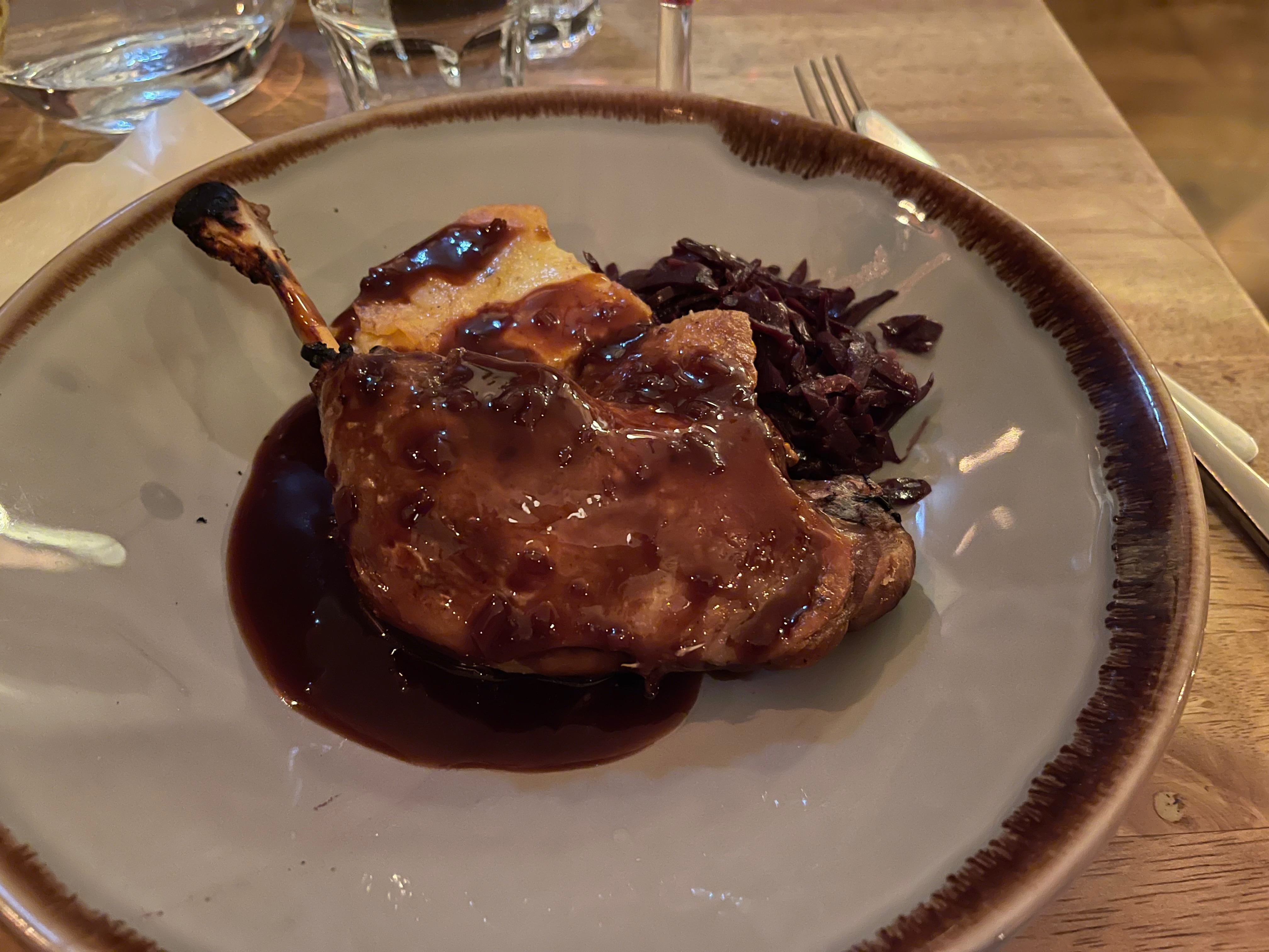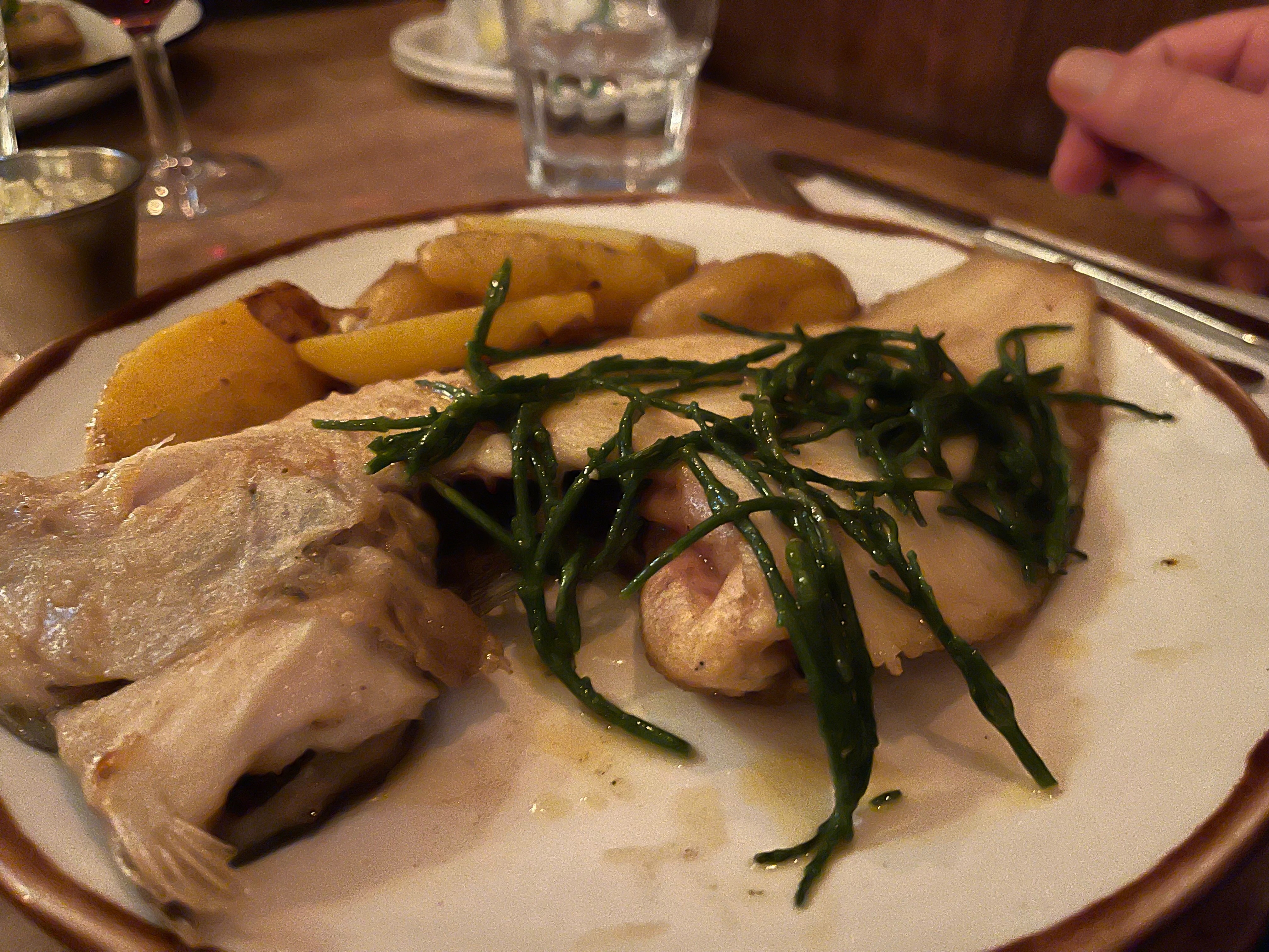 By now we’re also hungry so head up nearby Greek Street in search of sustenance and land in a French brasserie doing fixed-price pre-theatre dinners. Unusually for me, not only did I not write it down, but I didn’t even note the price. As I said, my back was sore.