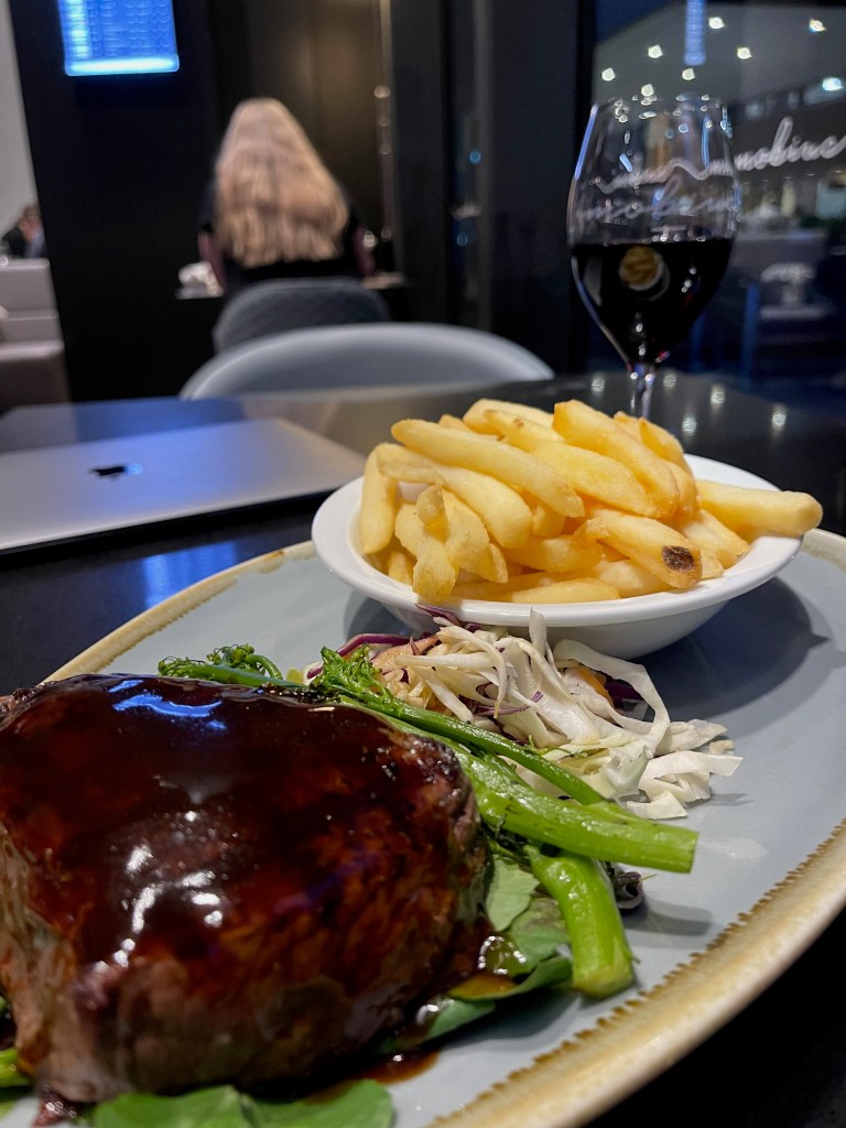 My, oh my! I have never seen airport or hotel food that looks as good as this! And, anything served in a pretty glass will win me over. Don’t get me started on the rest of it. Just Yum!