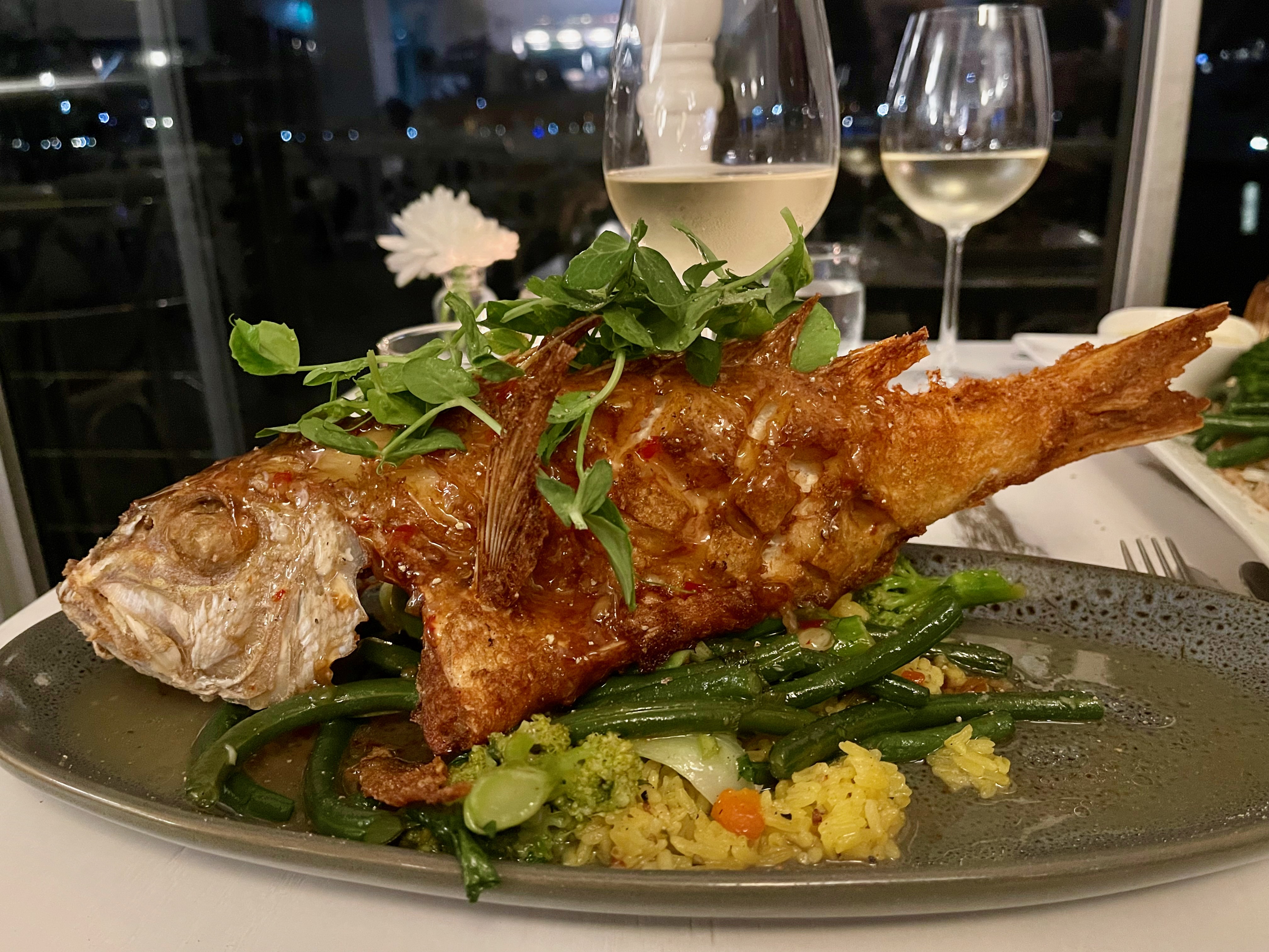 Thanks to a $100 loyalty voucher from my hairdresser, end of work celebrations at See, Mooloolaba.