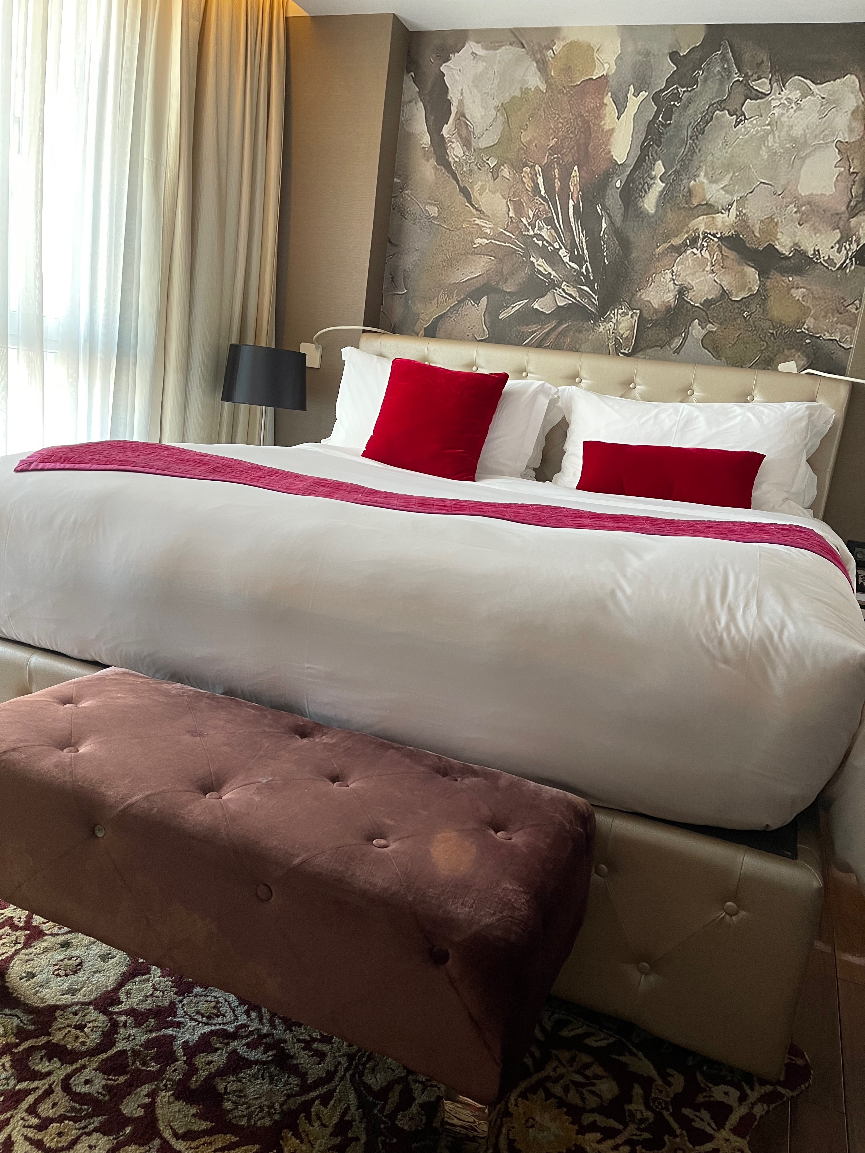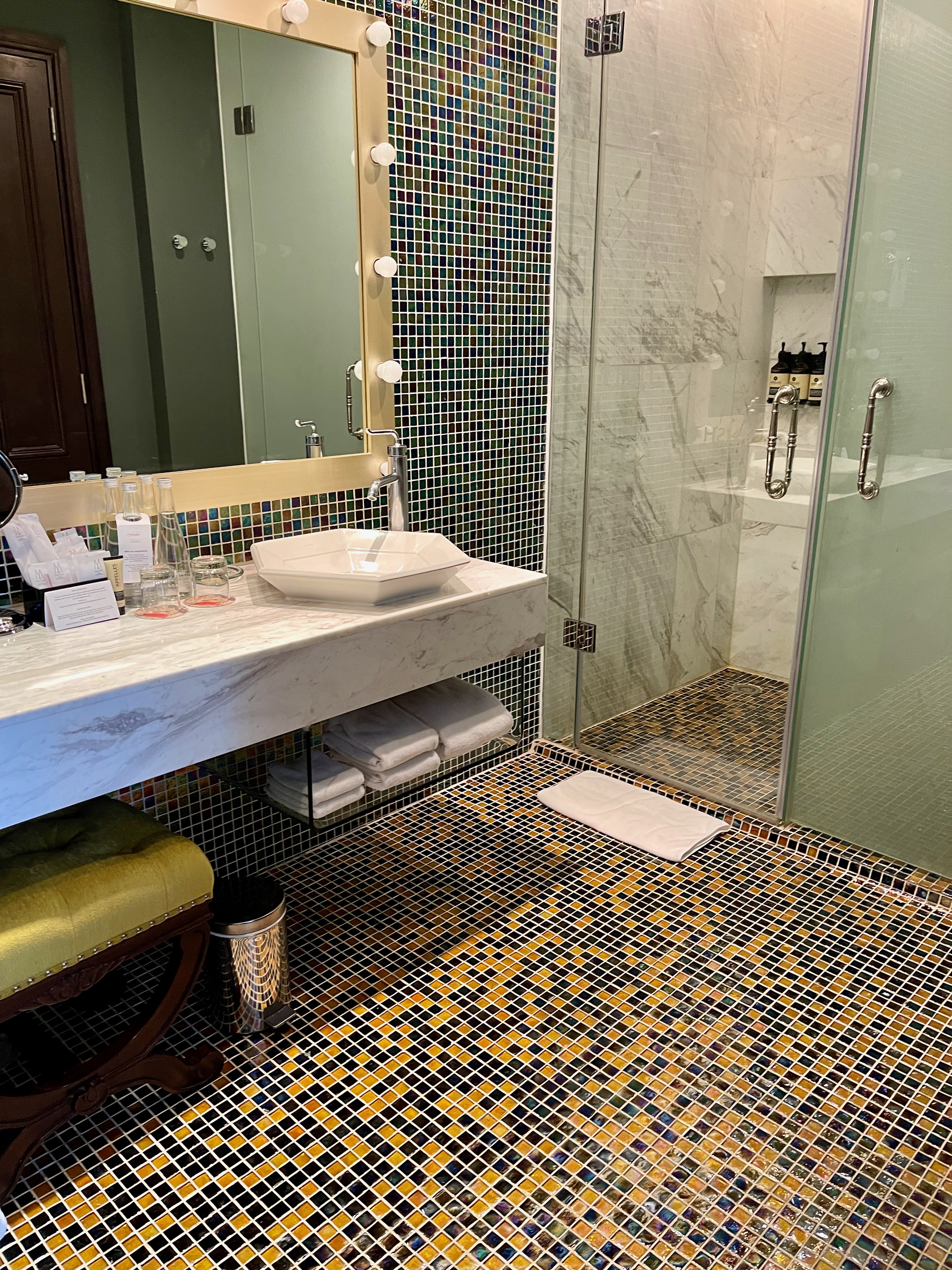 The rooms were super comfy and beautifully quiet; the beds tall enough that when you’re vertically challenged as I am you have to climb into them and plush enough to make you come over all princess and the pea-ish; and the bathrooms done in fabulously over-the-top mosaic tiles.
