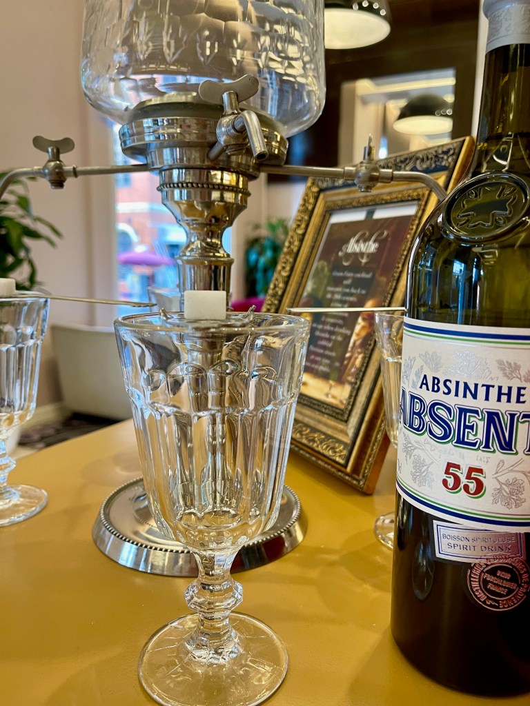 The bar – La Fee Verte (the Green Fairy) – is a nod to the decadence of another age and the (potentially) hallucinogenic effects of absinthe. And yes, there are plenty of cocktails on the list containing absinthe including the bottom middle pic in the gallery below.