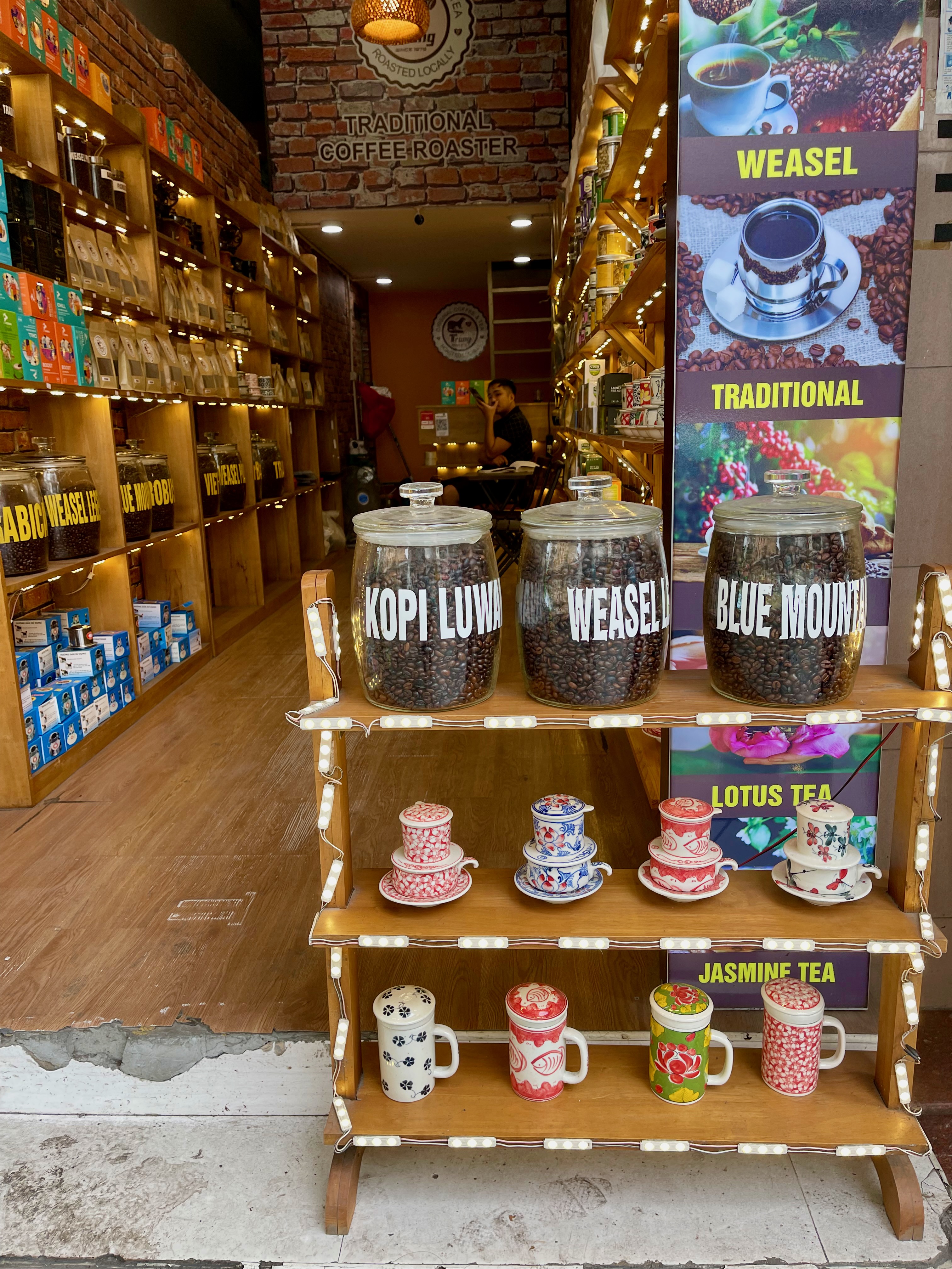 Aside from Vietnamese coffee – a sweet, rich coffee drink involving sweetened condensed milk and strong drip coffee – there’s also coffee made from the previously digested beans of a weasel; egg coffee (which we tried last time), and salt coffee.