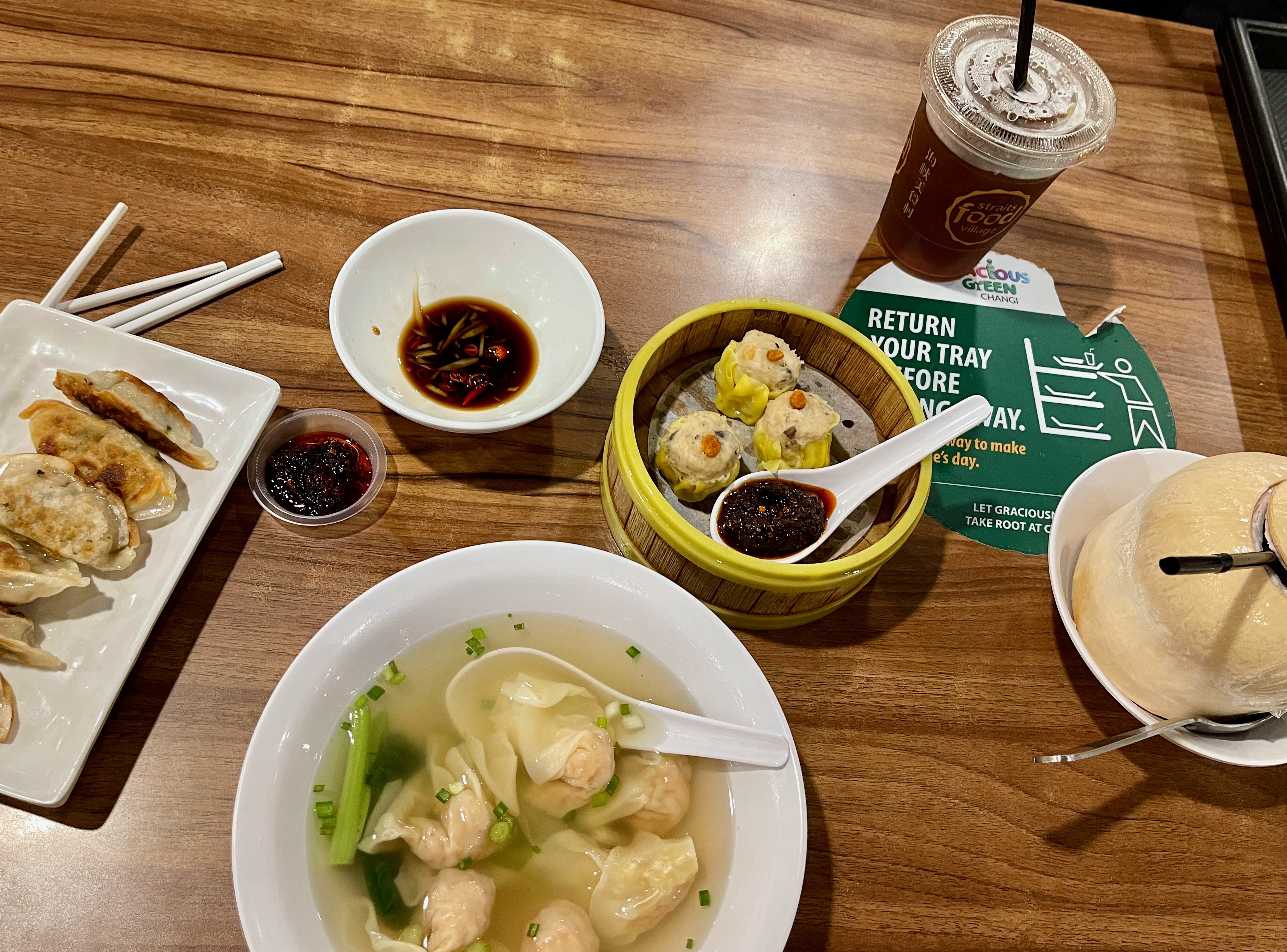 Beginning and ending with a noodle soup at Changi Airport in Singapore (below), I had noodle soups every morning for breakfast.