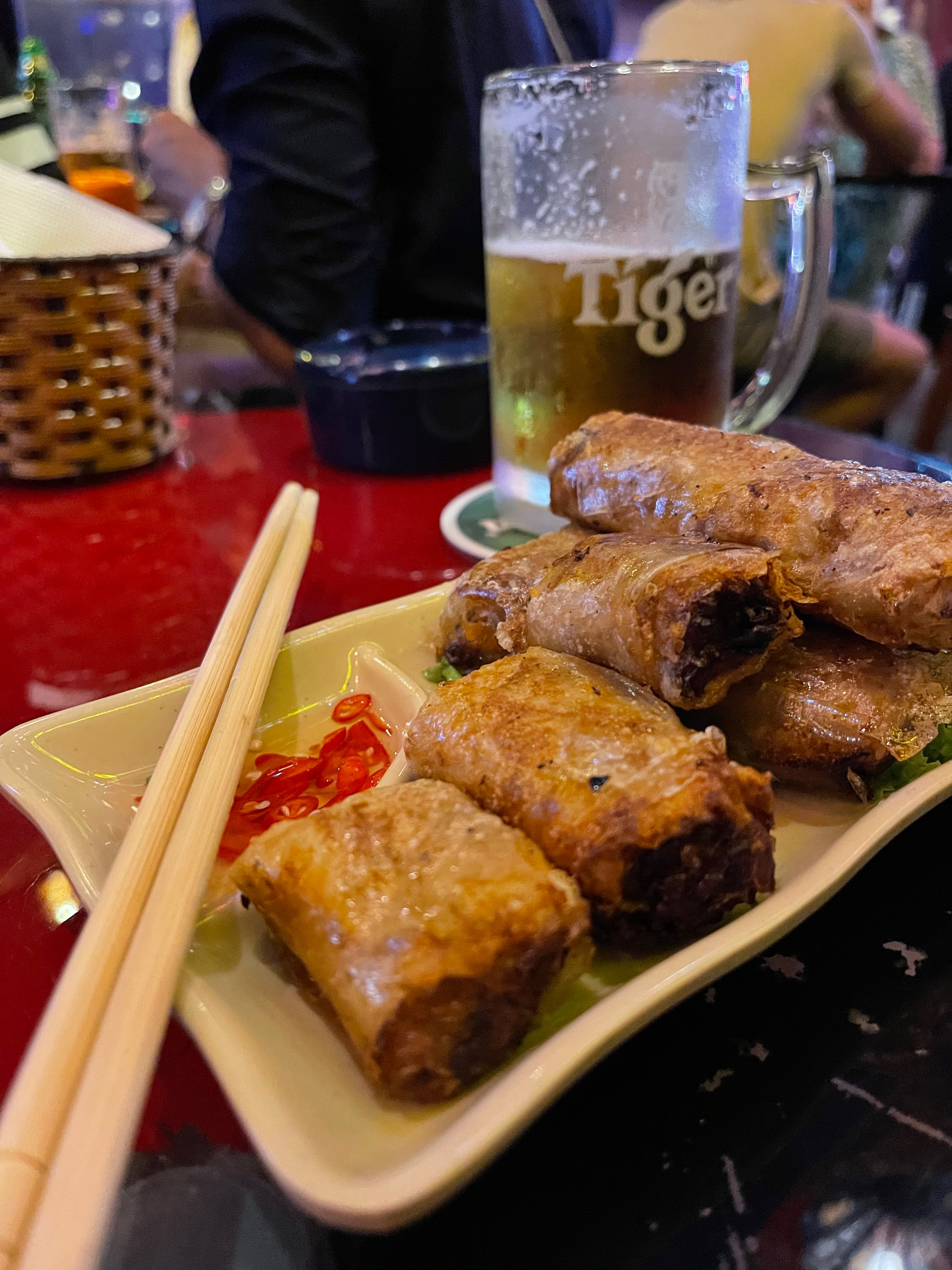 Ok, no two are the same. I soon gave up trying to work out which ones I liked the most (maybe the fried vermicelli ones in Hoi An?) and just enjoyed the general crunchy yumminess. We had them … everywhere … pretty much every time we had a beer. We even had a go at making our own at a cooking class. More on that another time.