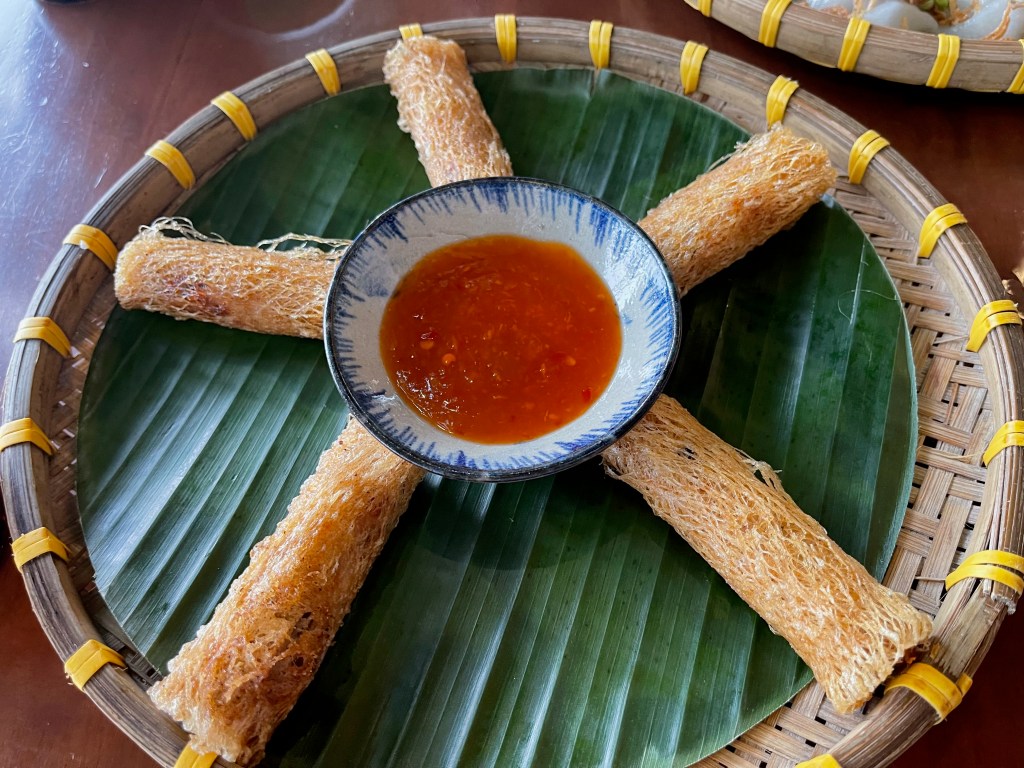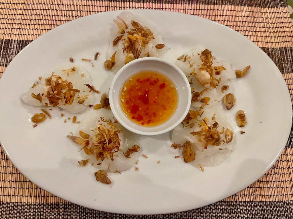 You can get them everywhere but they’re supplied to all the local restaurants by the one family – who have kept the recipe secret for generations. The rice paper is translucent and wrapped to resemble a flower shape (the origin of the name “white rose”). Said to be made with water from a certain well in Hội An, this dumpling is not found anywhere else. The filling is prepared with a mix of shrimp, mushrooms, bean sprouts and spring onions. They’re arranged on a platter and sprinkled with shallots, and served with a dipping sauce made from shrimp broth, chillies, lemon and sugar. Aside from being delicate and lovely, the name is so so pretty.