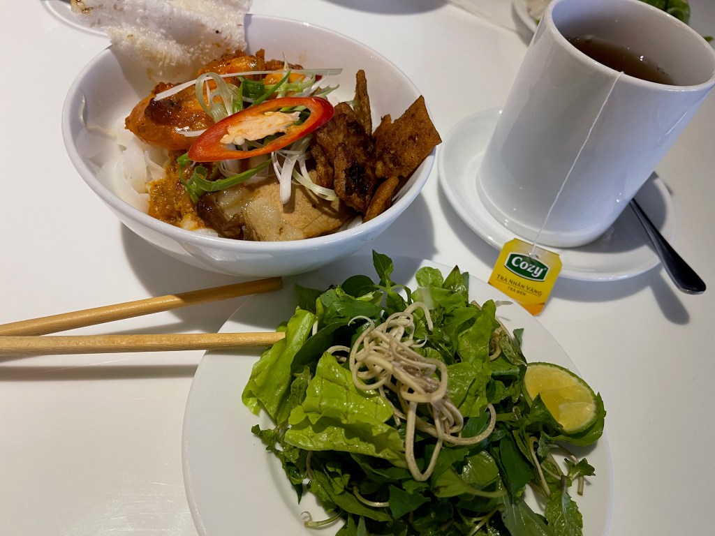Pho or Bun Ca (Fried Fish Noodle soup) in Hanoi and Pho, cao lầu or mì Quảng in Hoi An. Despite my addition of chilli (I’m that person), I found them gentle on my tummy and a great way to start the day. (As an aside, I’m a fan of congee for the same reason).