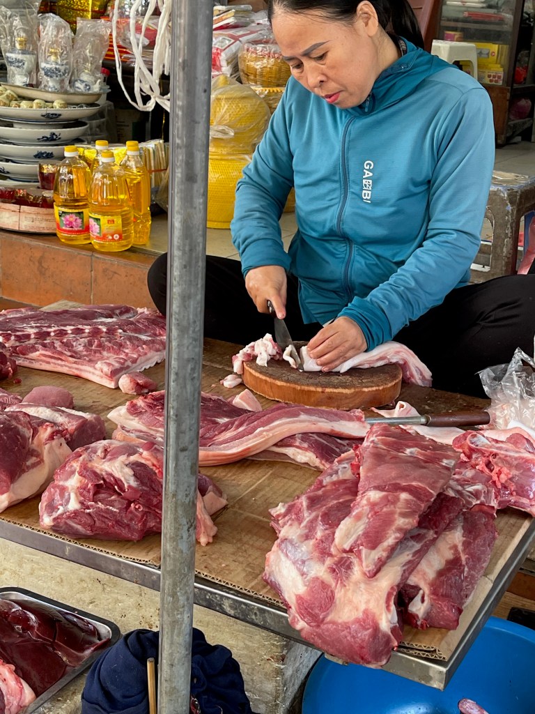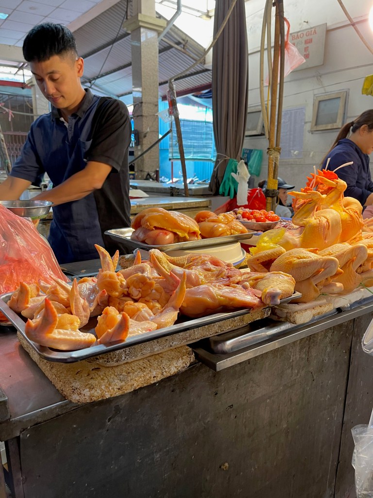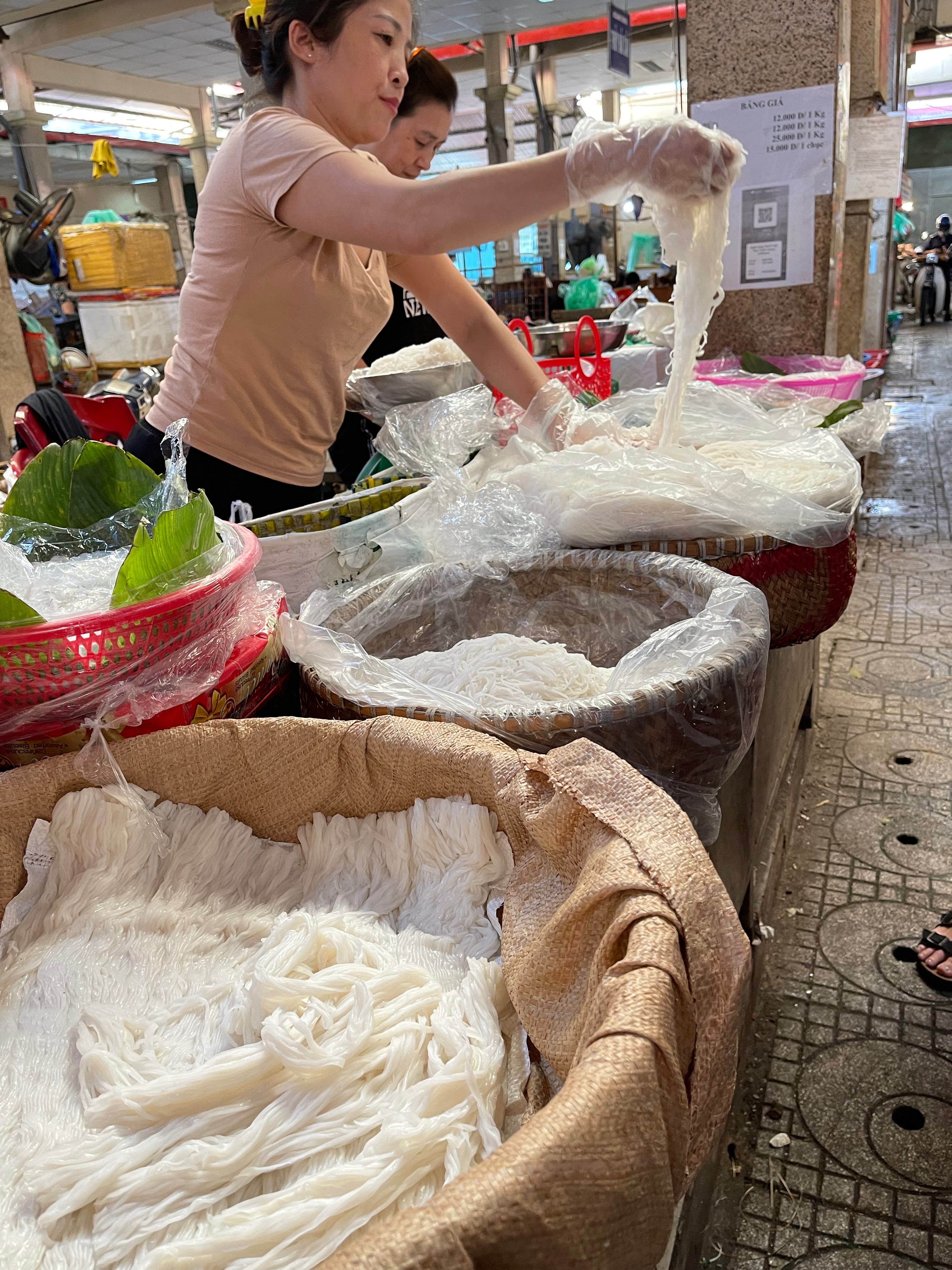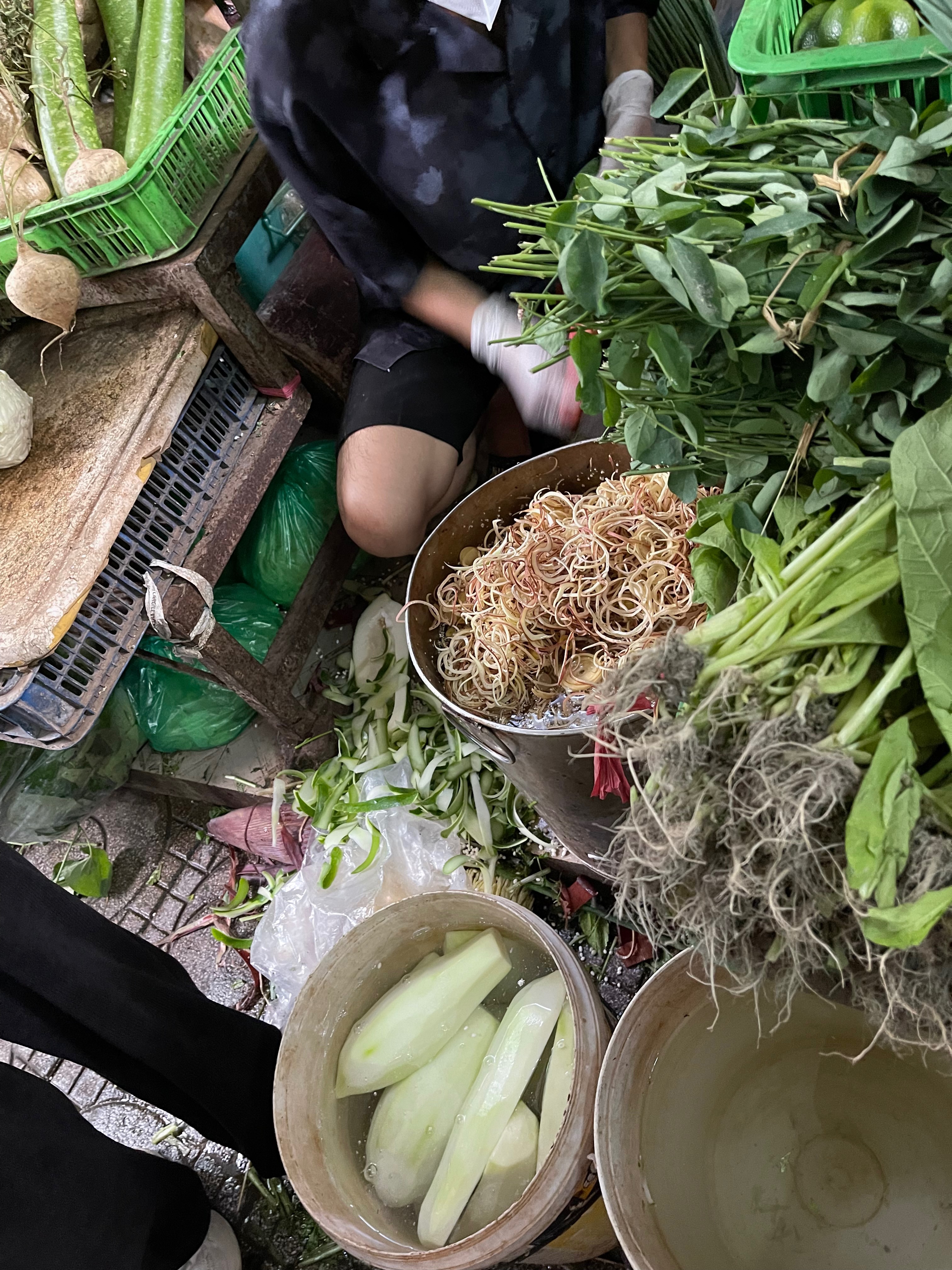 As with most wet markets in Hanoi, there are parts that are confronting – and we were warned about these before entering the market. The seafood is alive (the baby shrimps still jumping) – as is some of the other produce. There’s no refrigeration but we’re told the pork and chicken is as fresh as it’s possible to be. Even the rice noodles were made this morning.