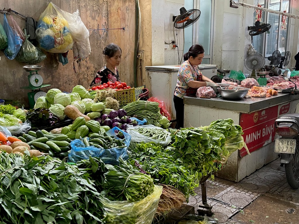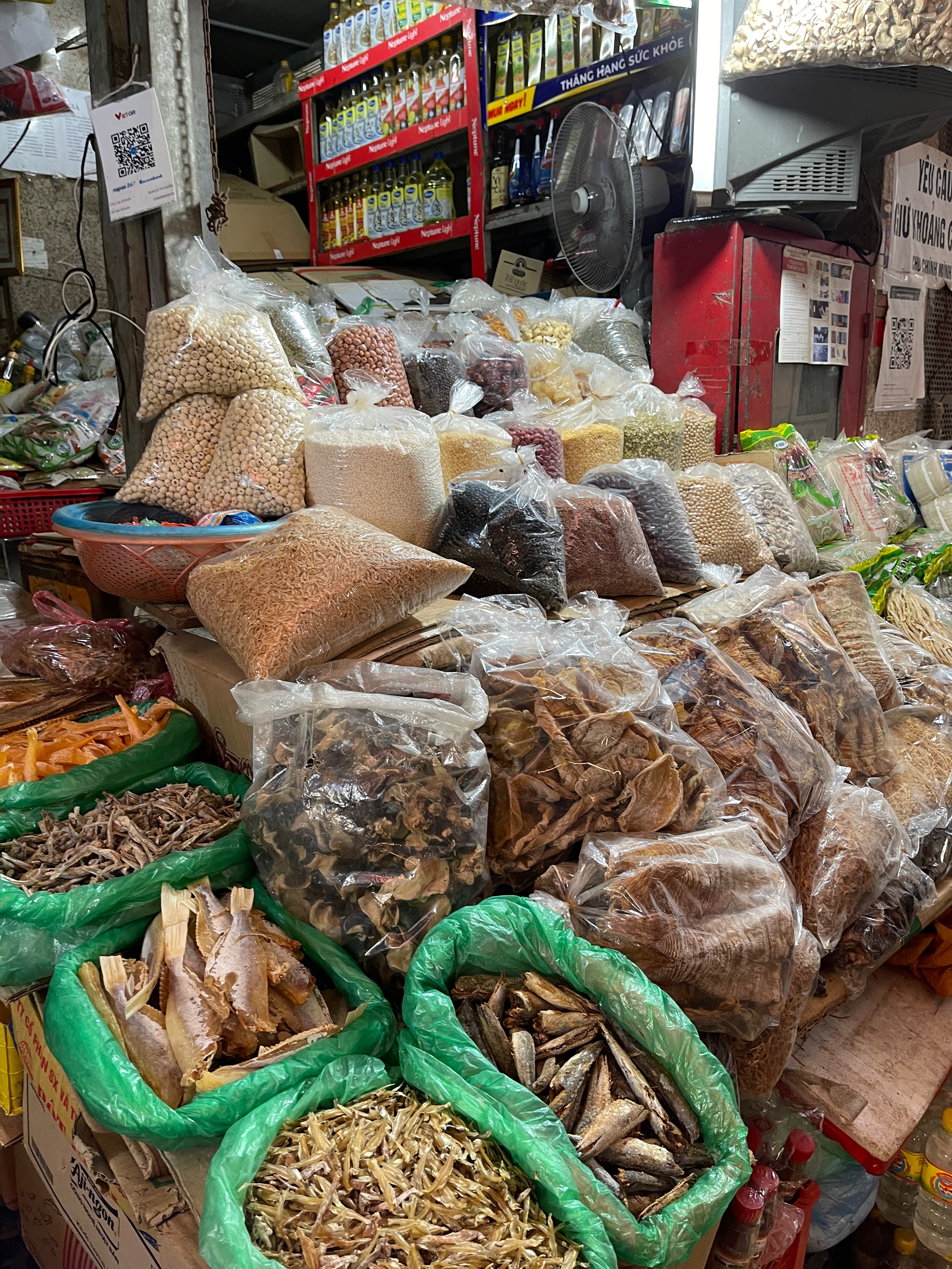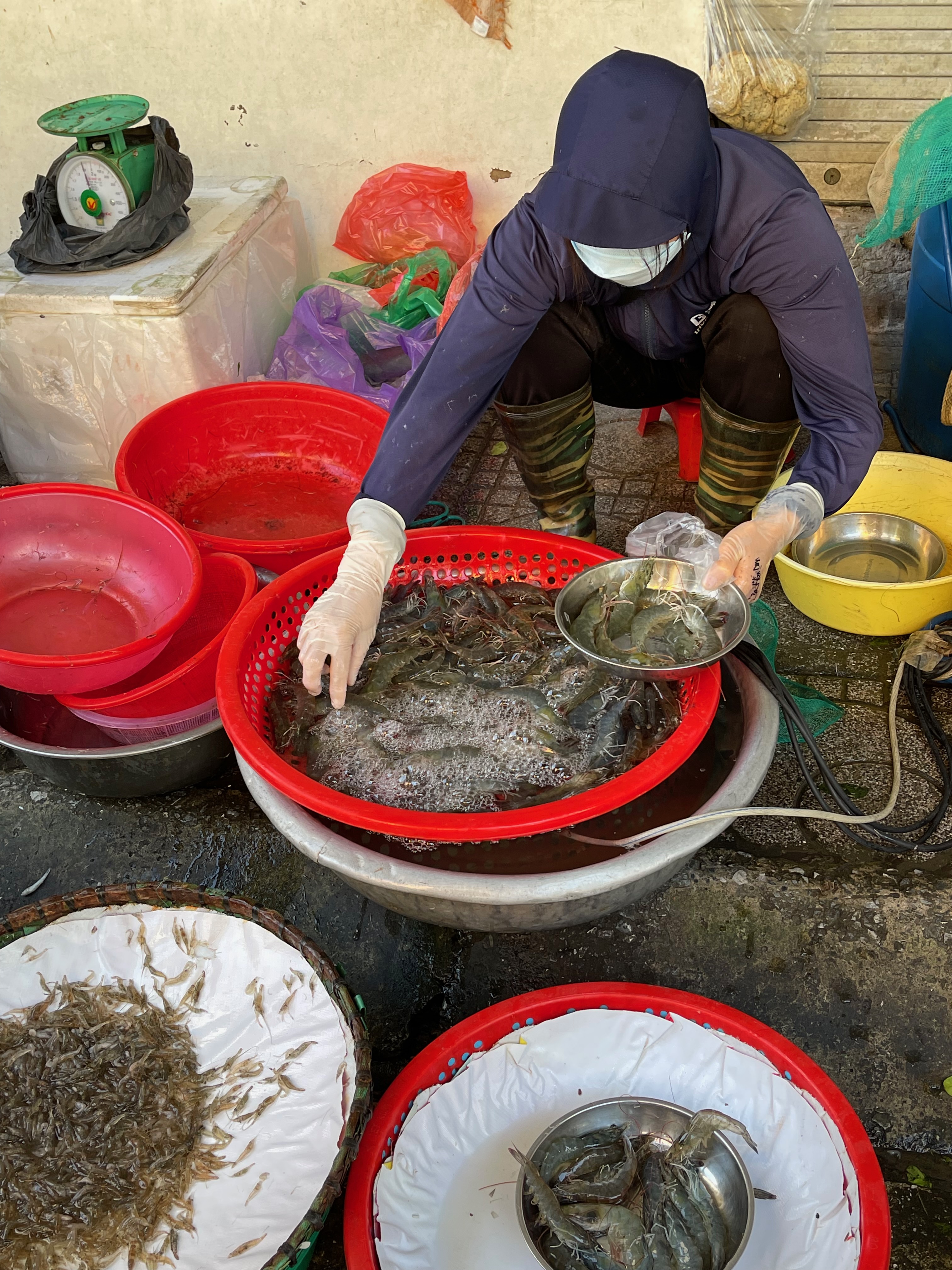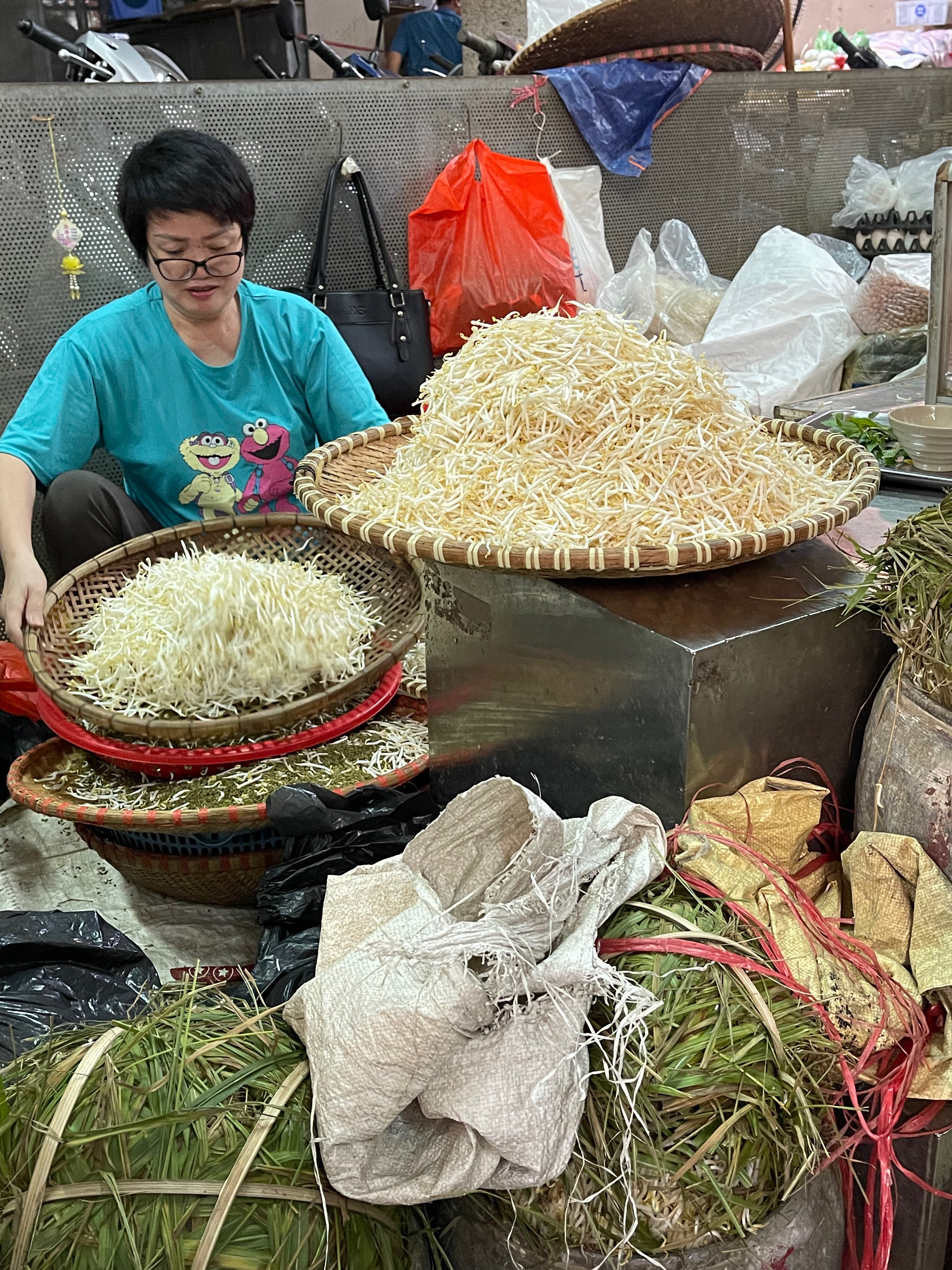 As with most wet markets in Hanoi, there are parts that are confronting – and we were warned about these before entering the market. The seafood is alive (the baby shrimps still jumping) – as is some of the other produce. There’s no refrigeration but we’re told the pork and chicken is as fresh as it’s possible to be. Even the rice noodles were made this morning.