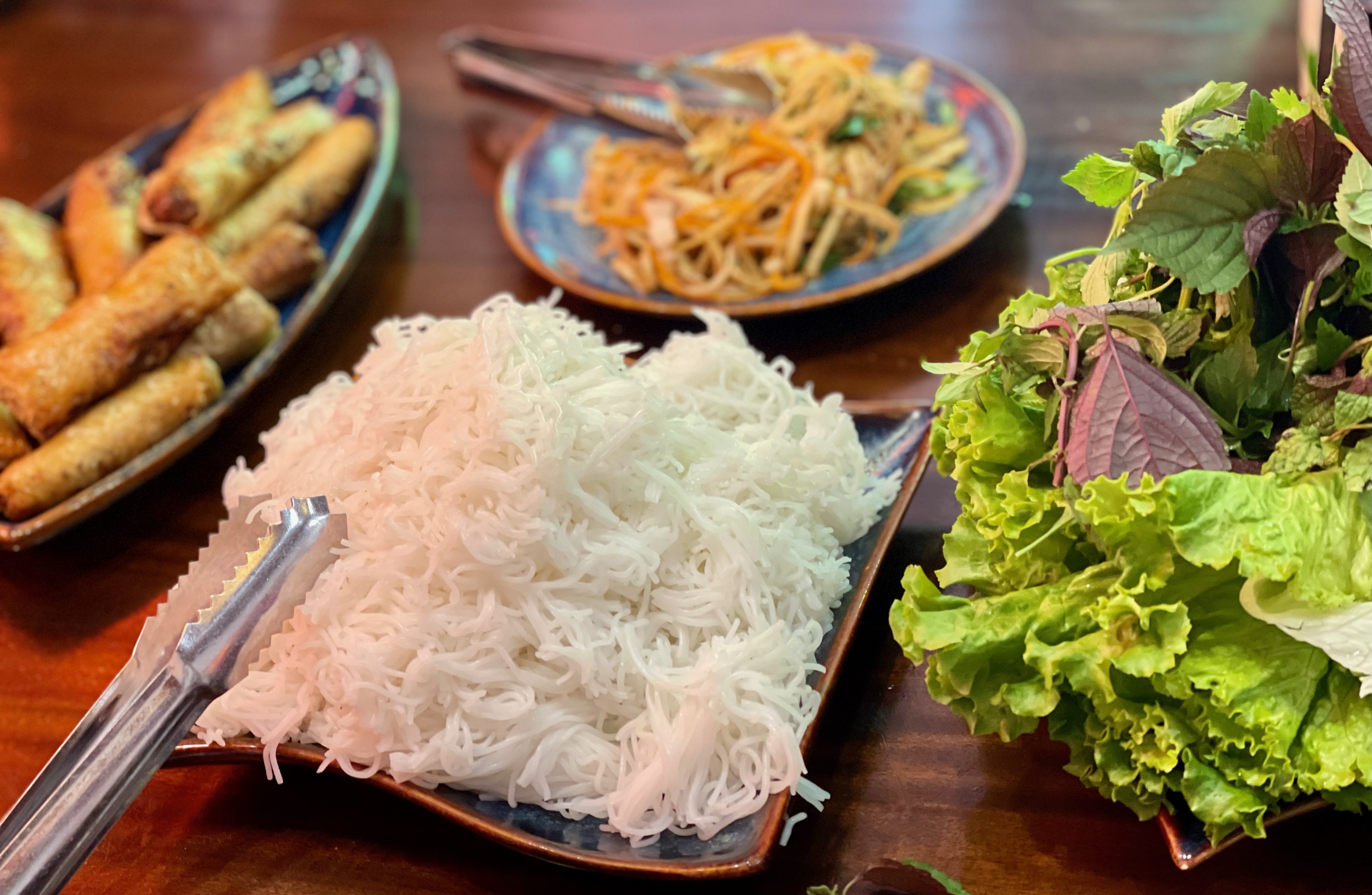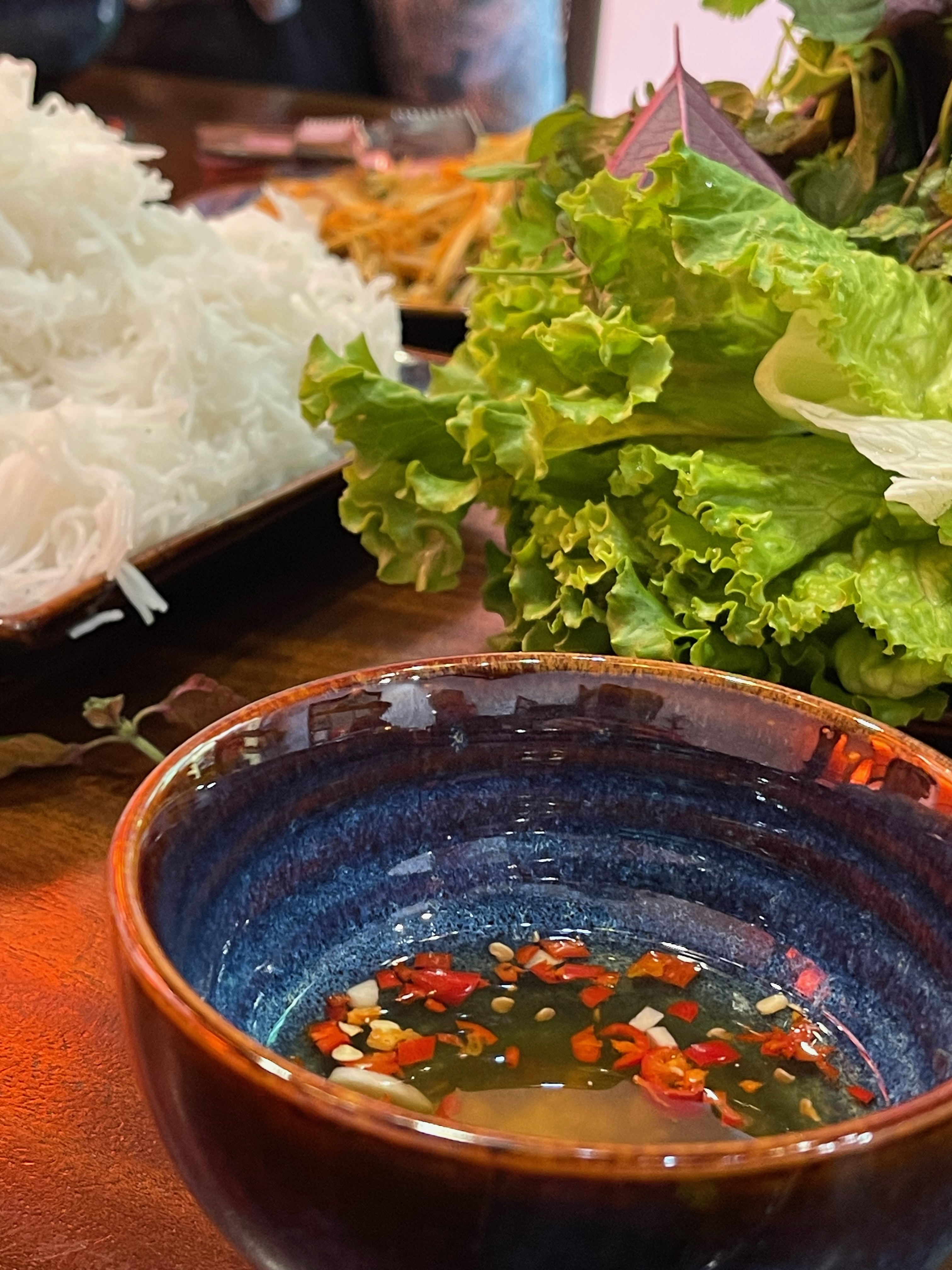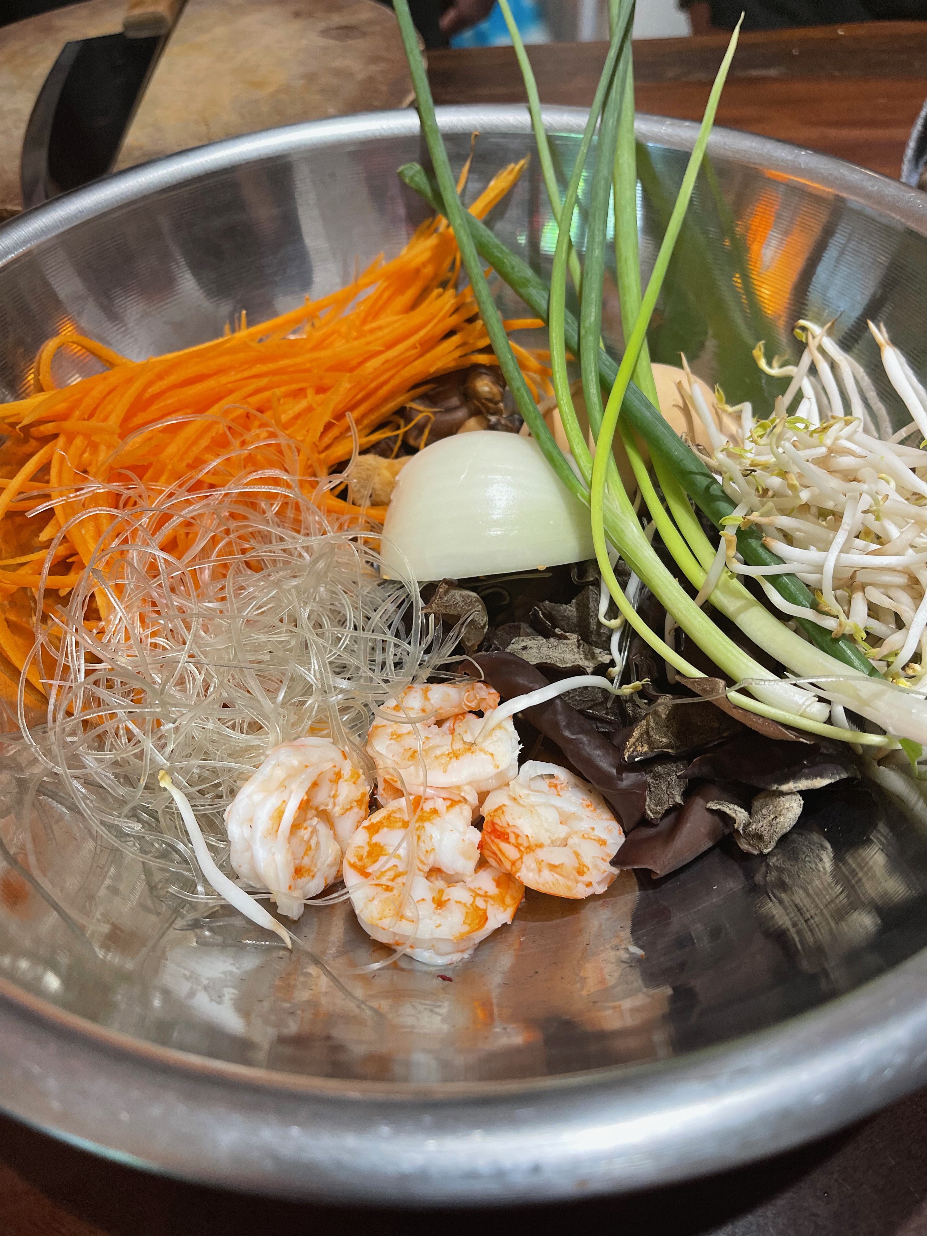 We’re introduced to the ingredients and the combination of tastes in Vietnamese cuisine, and are told how that is different between north and south – the north tends towards more sour while the south prefers more sweet. We’re also told this will be a hands-on class and we’ll all be contributing.