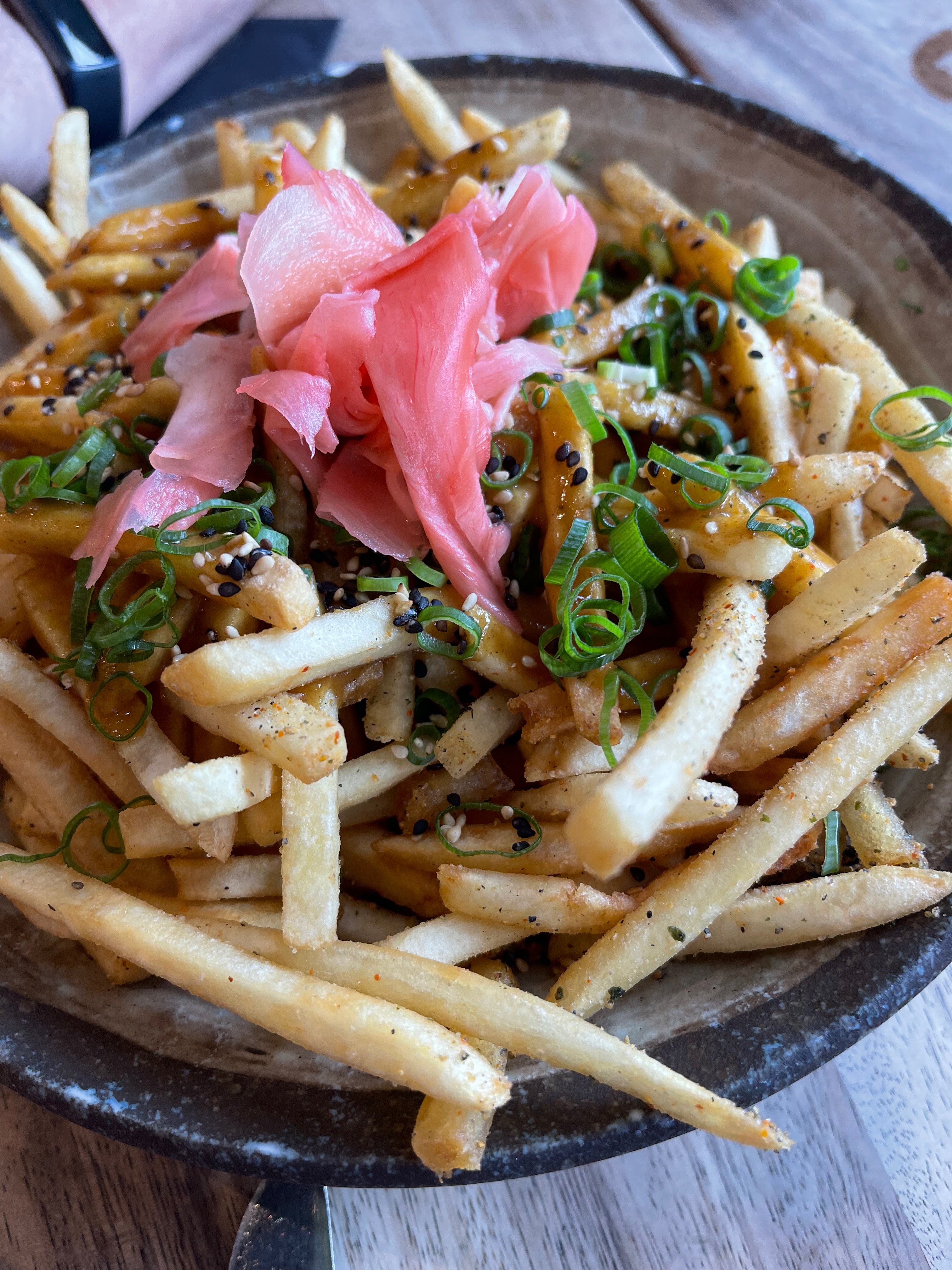 One of the best things about having house guests from interstate is showing off how fabulous the food is here on the Sunny Coast – hence our visit to Giddy Geisha in Maroochydore where many dishes – including their not-to-be-missed eggplant chips were shared.