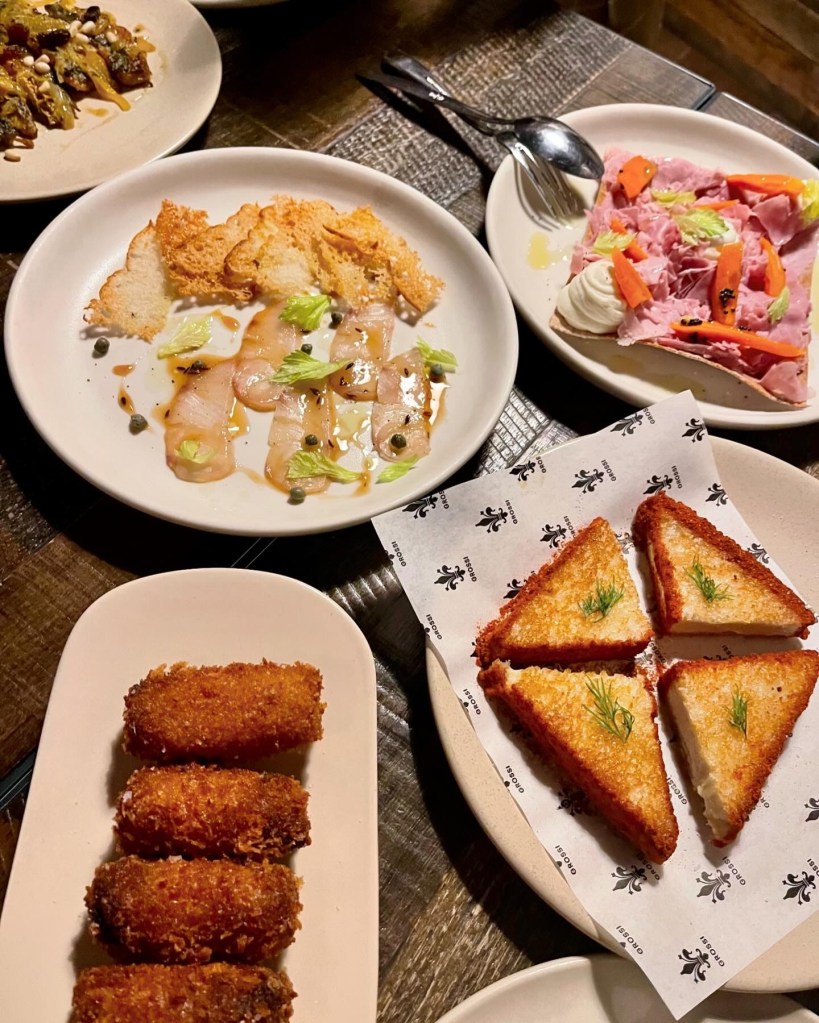On Saturday night, we met friends for dinner at Ombra for cicchetti—essentially Italian tapas. I’ve eaten here before, so I made sure to order the baccala toasties and the Nduja & Potato Crocchette. The sardines were also excellent, but while the cured kingfish and prosciutto with mustardy carrots were tasty, Grant and I were a tad disappointed—and left hungry.