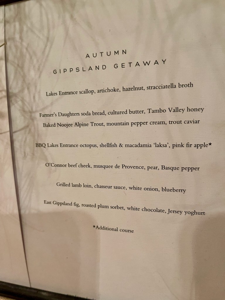 For our anniversary dinner we splurged at Farmer’s Daughters. A paddock-to-plate restaurant with as much as possible sourced from the Gippsland region of Victoria, I’d wanted to bring Grant here since trying it last year with my friend Heather. He wasn’t disappointed.