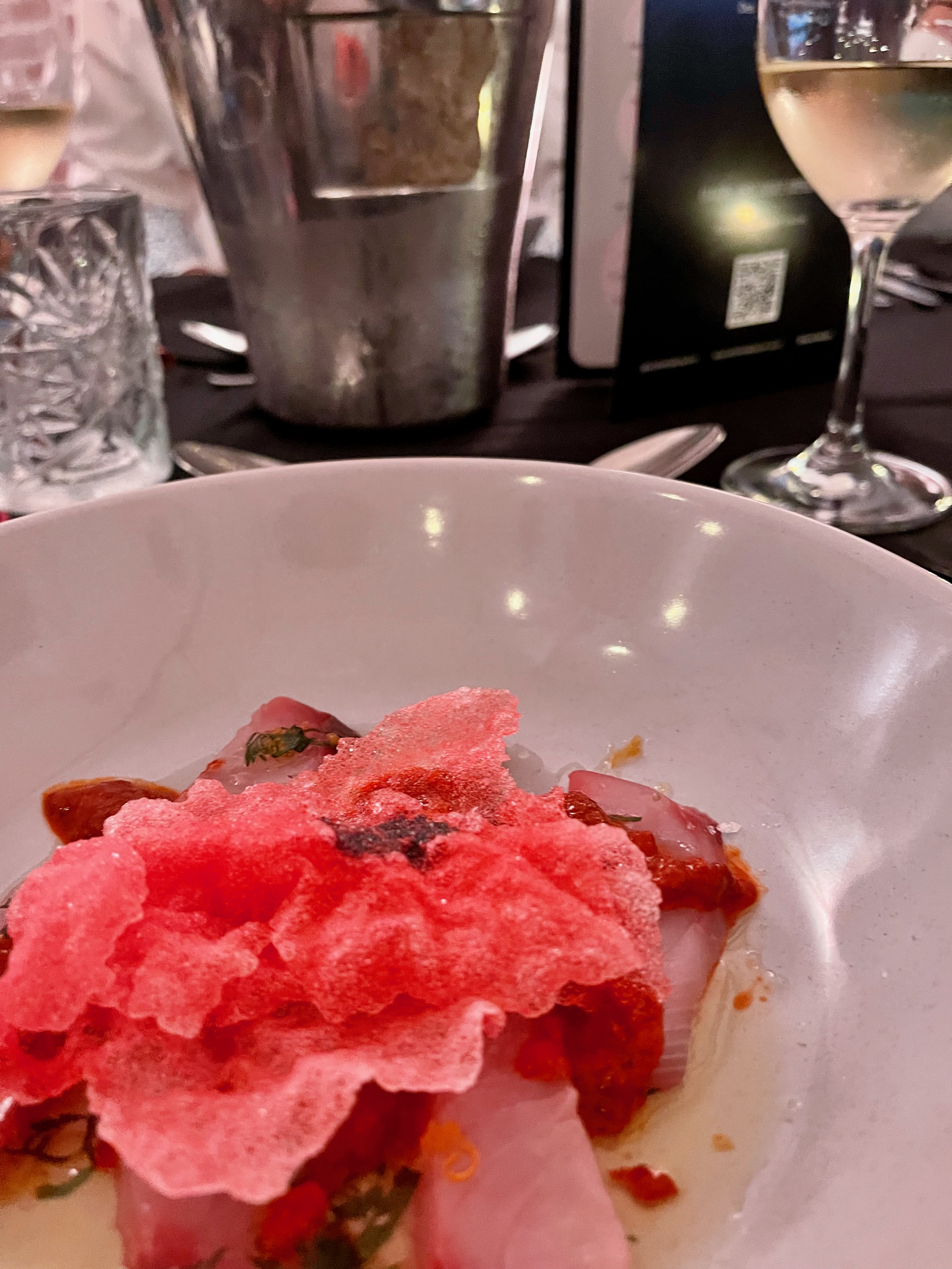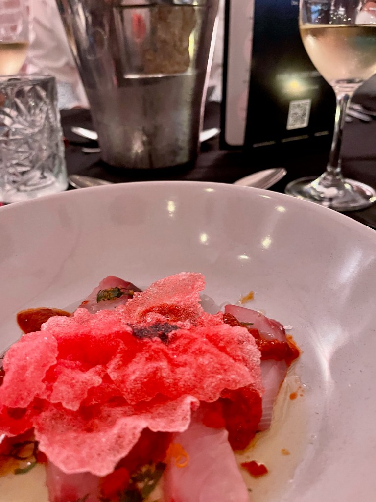 Each course was introduced with an audio-visual accompaniment intended to invoke the memories of the flavours.