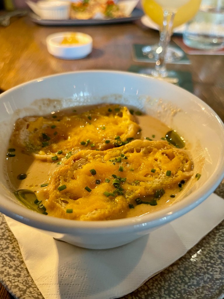On our final night we also splurged on dinner at Gordon Ramsay’s Bread St Kitchen. I had a go at replicating my meal – onion and cider soup and duck with red curry sauce – for Grant when we got home.