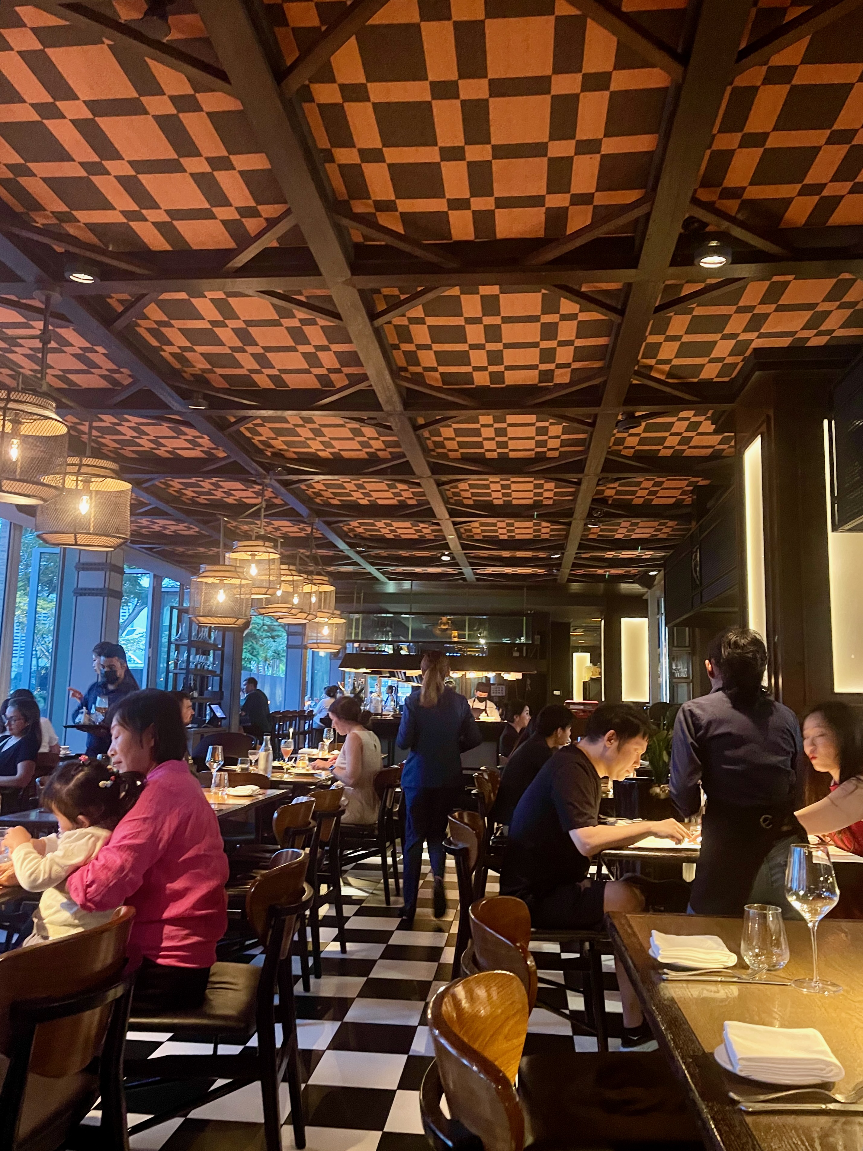 We did, however, splurge on a ridiculously expensive cocktail – the ubiquitous Singapore Sling at the Long Bar at Raffles Hotel. Why? Because Sarah had never done it before and I last did it in 1992 on my first trip to Singapore with Grant.