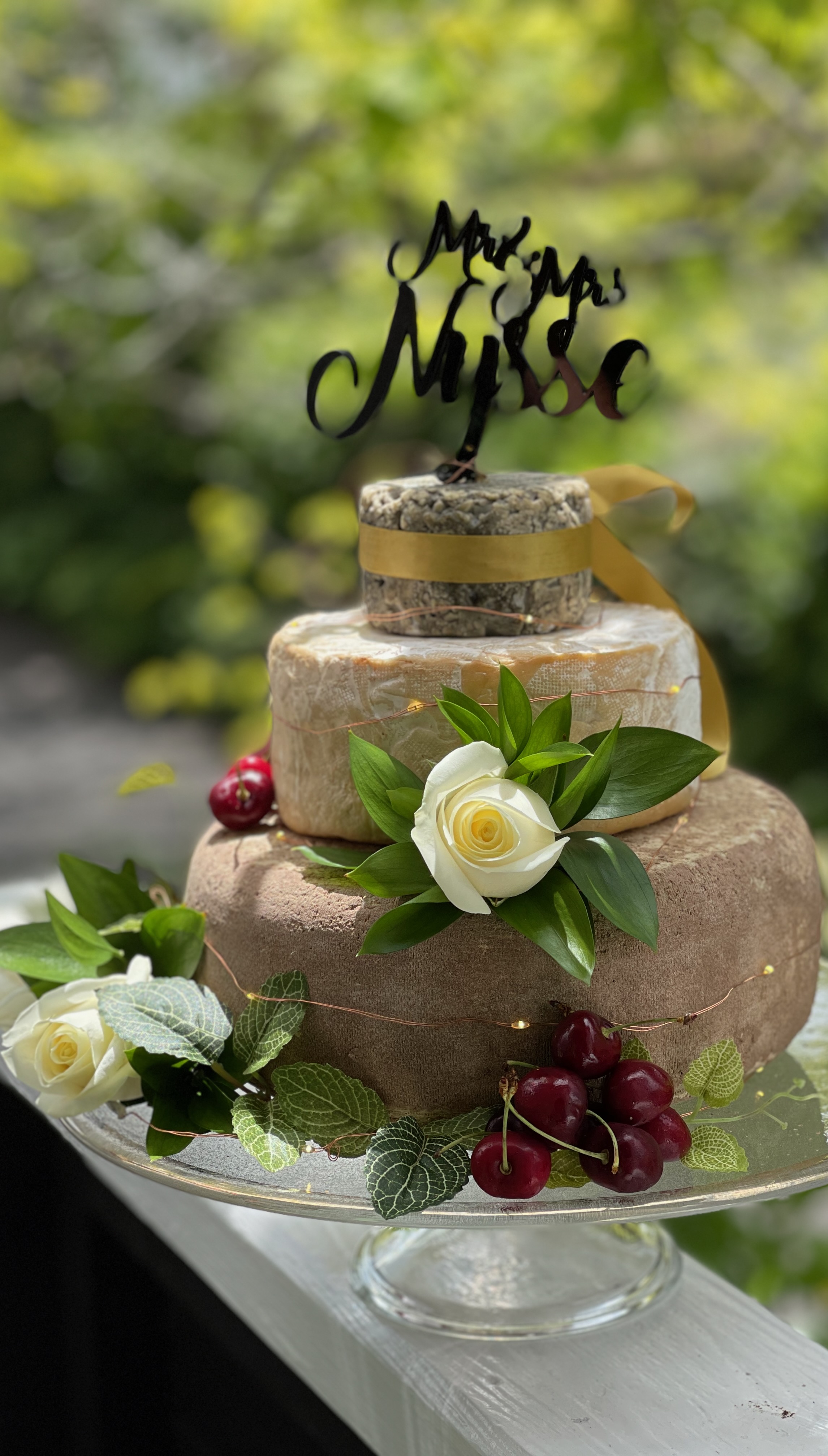 My bestie provided this amazing cheese cake to stand in for the wedding cake. It consisted of three wheels of cheese and tasted as good as it looked.