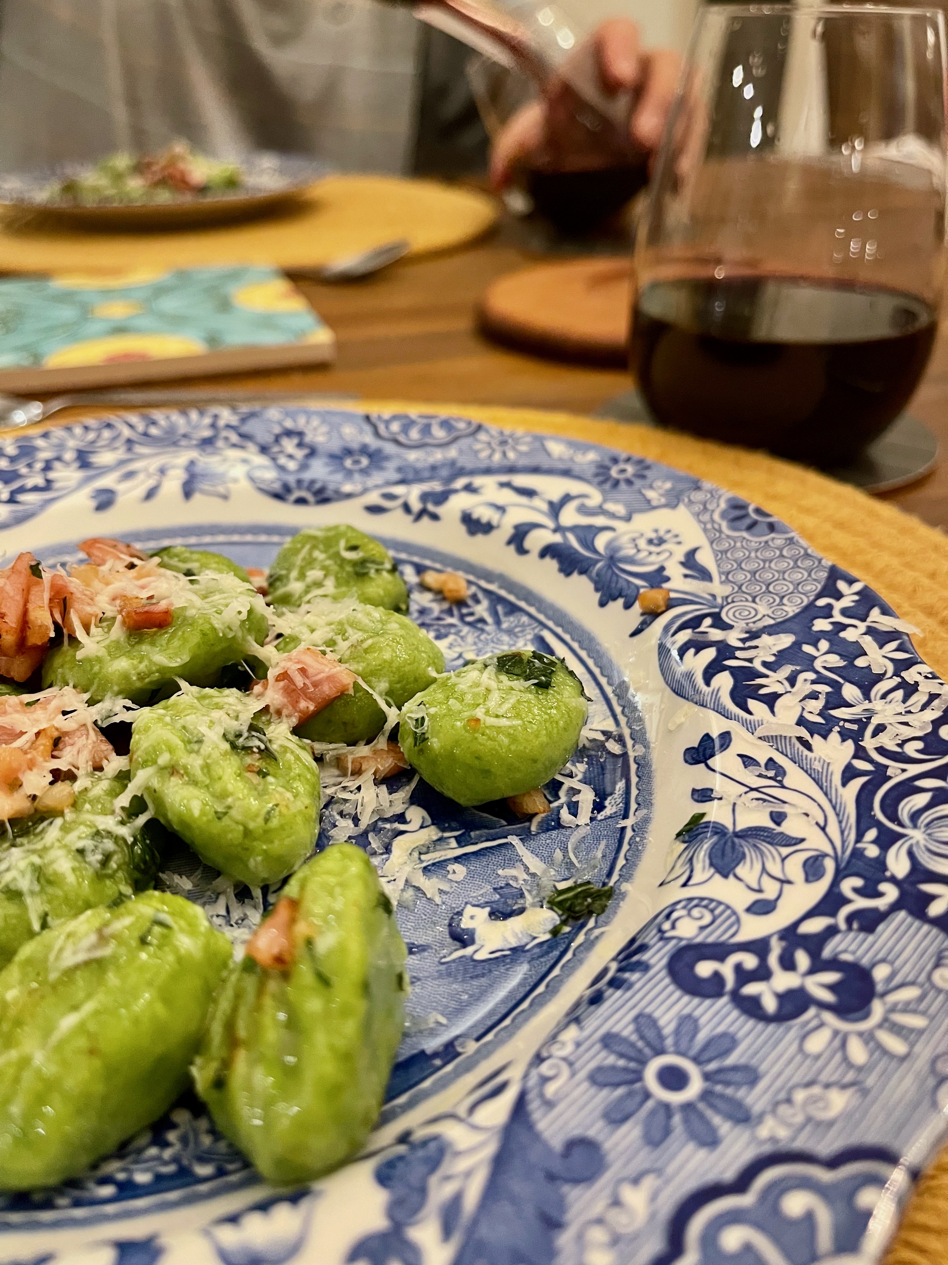 Maybe this is how I finally get PC to eat his peas?? I love peas soooo much. With loads of black pepper. He won’t touch them. We like potato gnocchi. And I put it in soups. Gotta try this!!