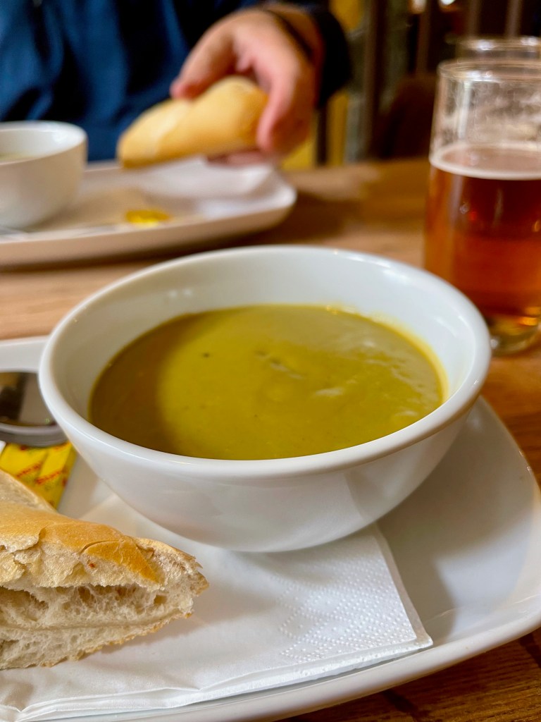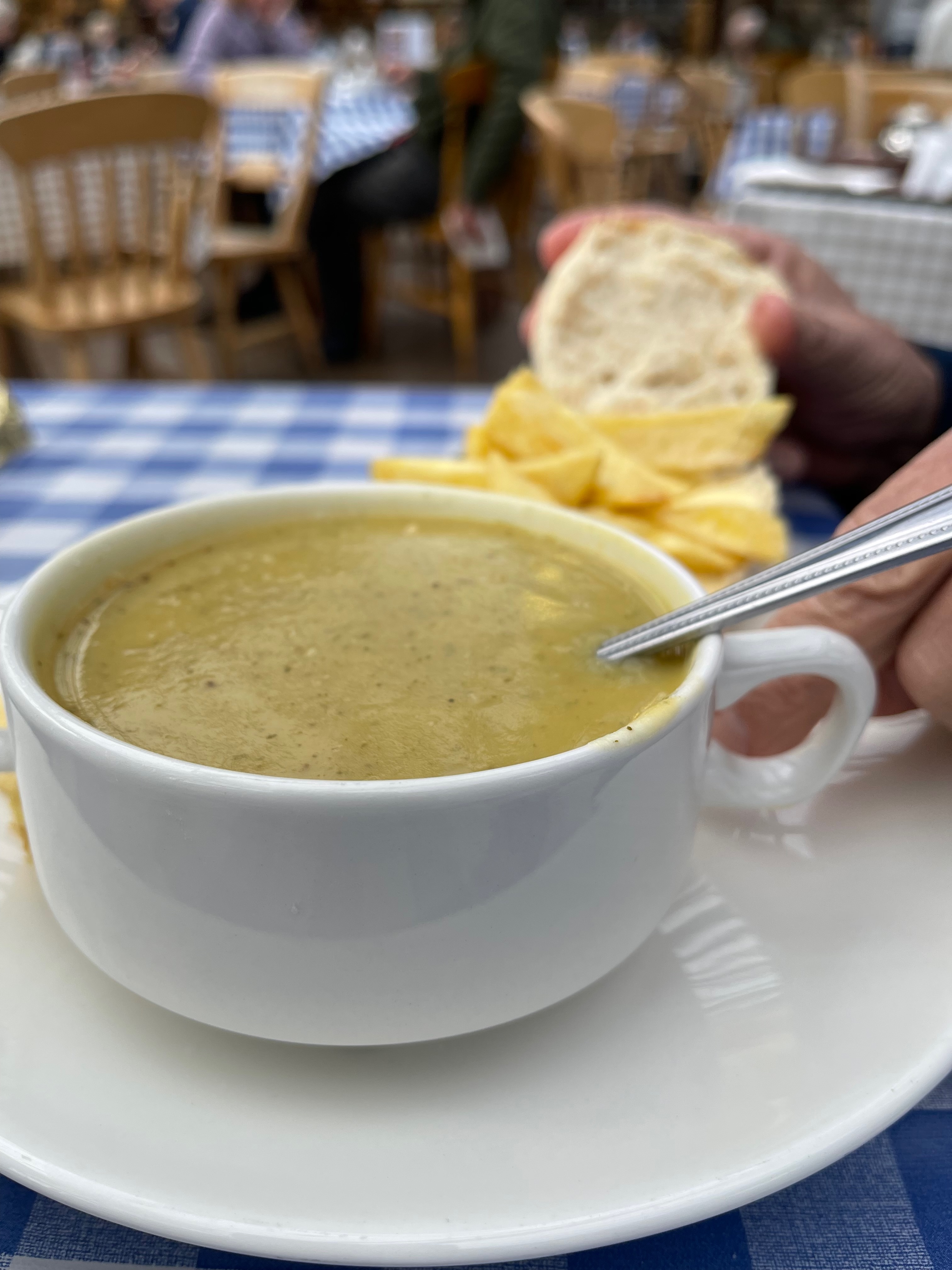 Mostly we had whatever was the soup of the day in a pub or cafe. Sometimes it would be the soup of the day and a shared sandwich. Tomato, parsnip, leek, broccoli, or combinations of the above, while they varied in quality, they certainly hit the spot.