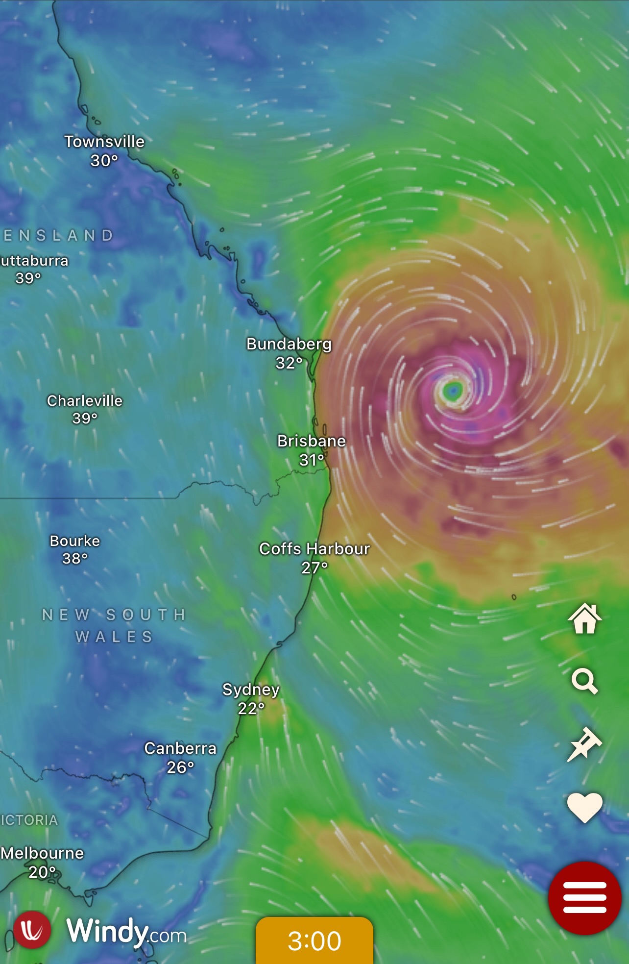 Despite being exhausted I slept badly last night and was awake from 1.30am. I think I was over-tired (what am I, two?), but I was also worrying about Cyclone Alfred and whether it will hit our part of the coast. According to the news I scrolled through, it’s on target to make landfall around Maroochydore so I lay awake worrying about Sarah and the house and the friend who is staying in our house even though I know there’s absolutely nothing I can do about it. They’re saying it will hit by Wednesday. I message Sarah to ask her to bring the pool lounges inside and remove the gauze I’ve put on the lemon and bay trees to stop them from being eaten by mutant locusts. She tells me to go back to sleep. I tell her to let Kym know where the torches are. She tells me she has it covered and to go back to sleep. I know she has got it covered, but still I lie awake.
